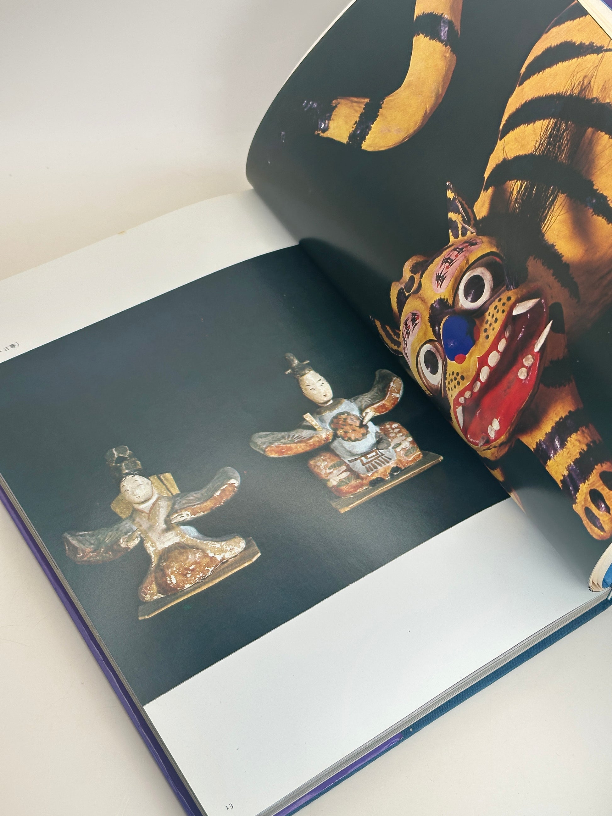 A charming and visually striking vintage Japanese reference book titled 郷土玩具 (Kyōdo Gangu), dedicated to traditional regional folk toys of Japan. This is Volume 1: 紙 (Paper), focusing on paper-based folk crafts such as masks, dolls, and festival toys, offering a fascinating glimpse into Japan’s rich vernacular culture.