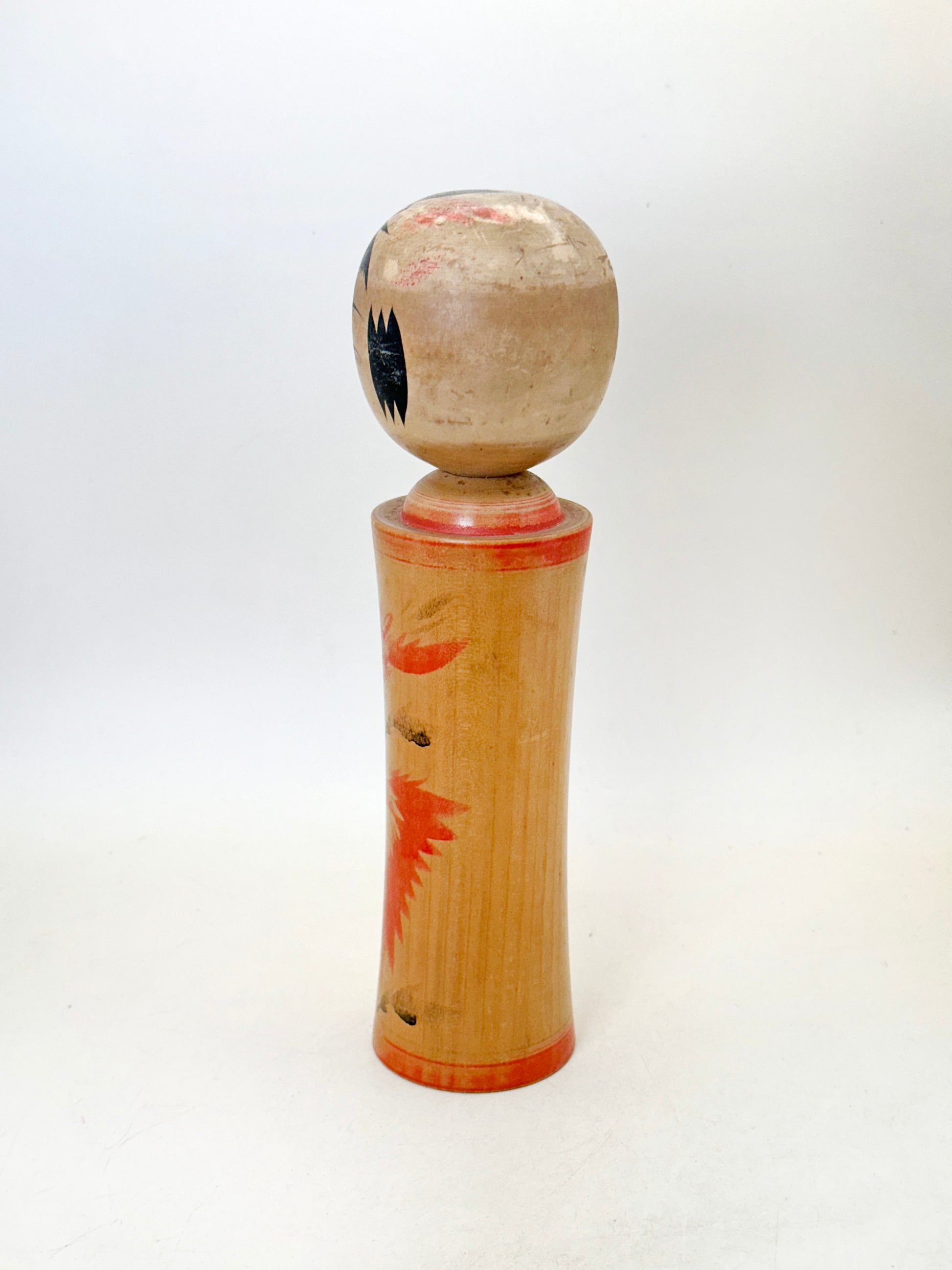 Sobre el artista Akira Goto (後藤皓, 1935–2015) Nació en Naruko Onsen, prefectura de Miyagi, en 1935. Fue hijo de Goto Shoichi y aprendió a hacer kokeshi de su padre, absorbiendo las técnicas y tradiciones del estilo Naruko desde temprana edad. Akira se convirtió en un artesano de pleno derecho en la década de 1950 y gradualmente desarrolló su propio estilo, marcado por patrones de pincel delicados y casi de acuarela, formas suaves y rasgos faciales entrañables. Permaneció activo durante décadas y fue admirado por su habilidad para preservar la tradición Naruko dándole un toque personal, casi poético. Su trabajo a menudo aparecía en ferias de arte popular y ahora es apreciado por los coleccionistas por su equilibrio entre tradición y expresión personal.