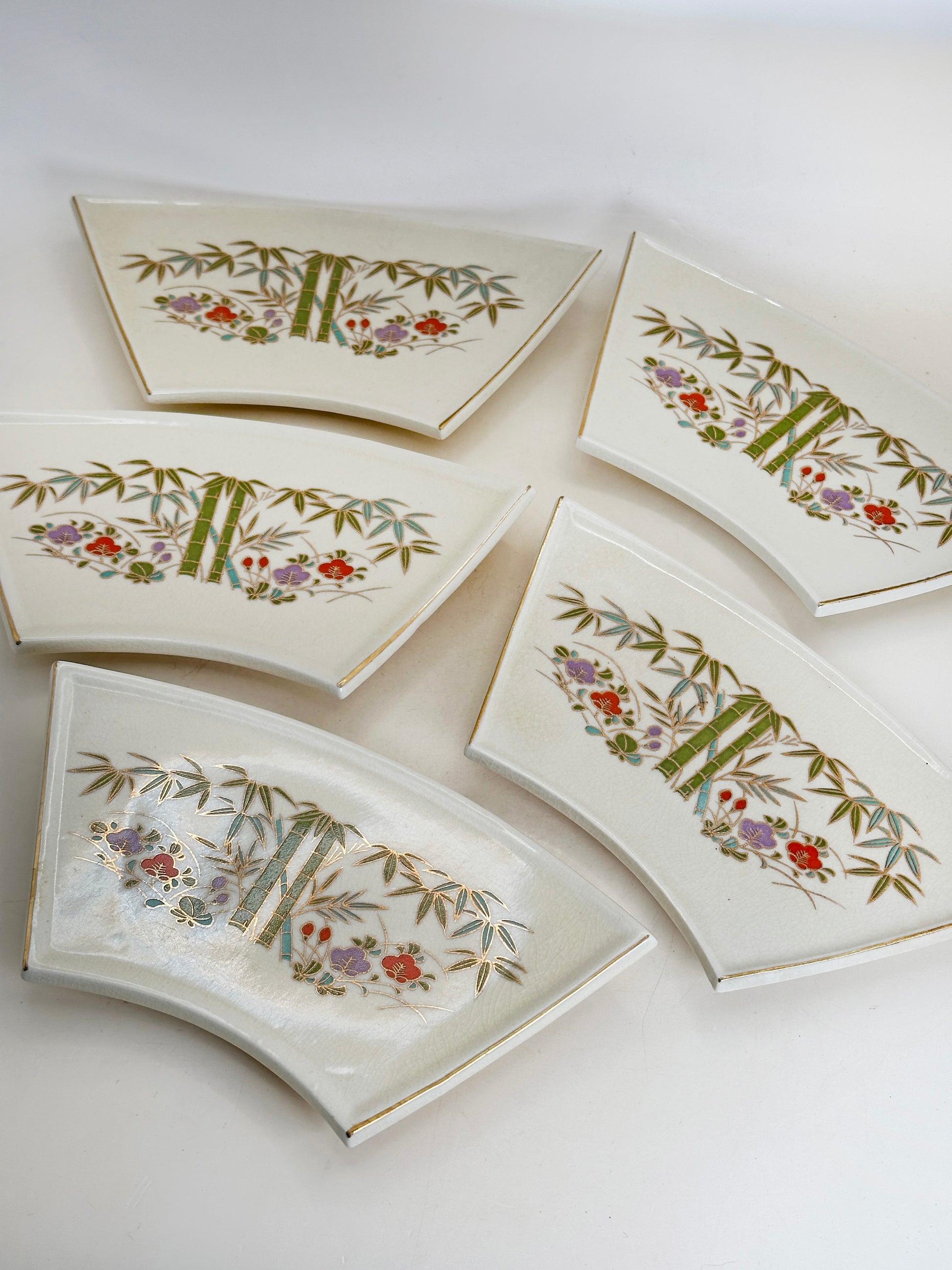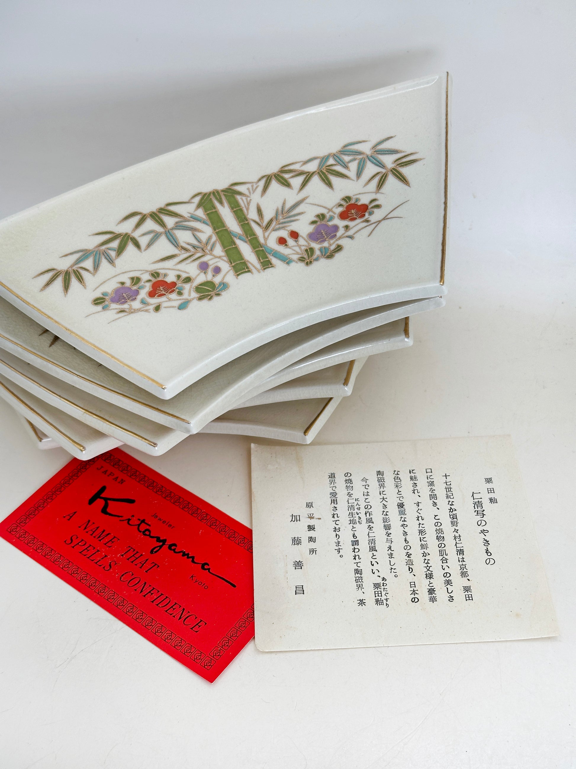 En conjunto, este juego transmite una sensación de poesía estacional y lujo discreto, lo que lo convierte en una hermosa adición a una mesa japonesa o en un ejemplo coleccionable del arte cerámico de Kioto.