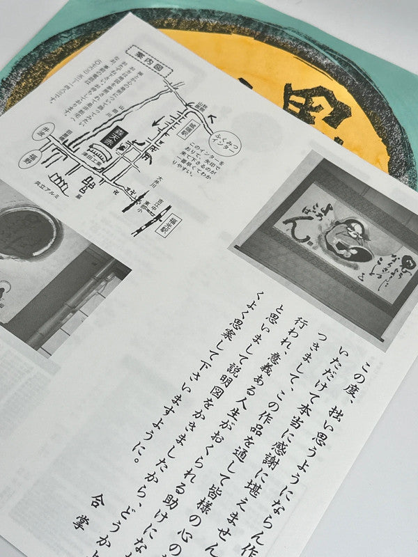 Une impression de Bodhidharma et d'une note zen avec l'emballage d'origine et une brochure blanche avec des informations sur l'artiste.