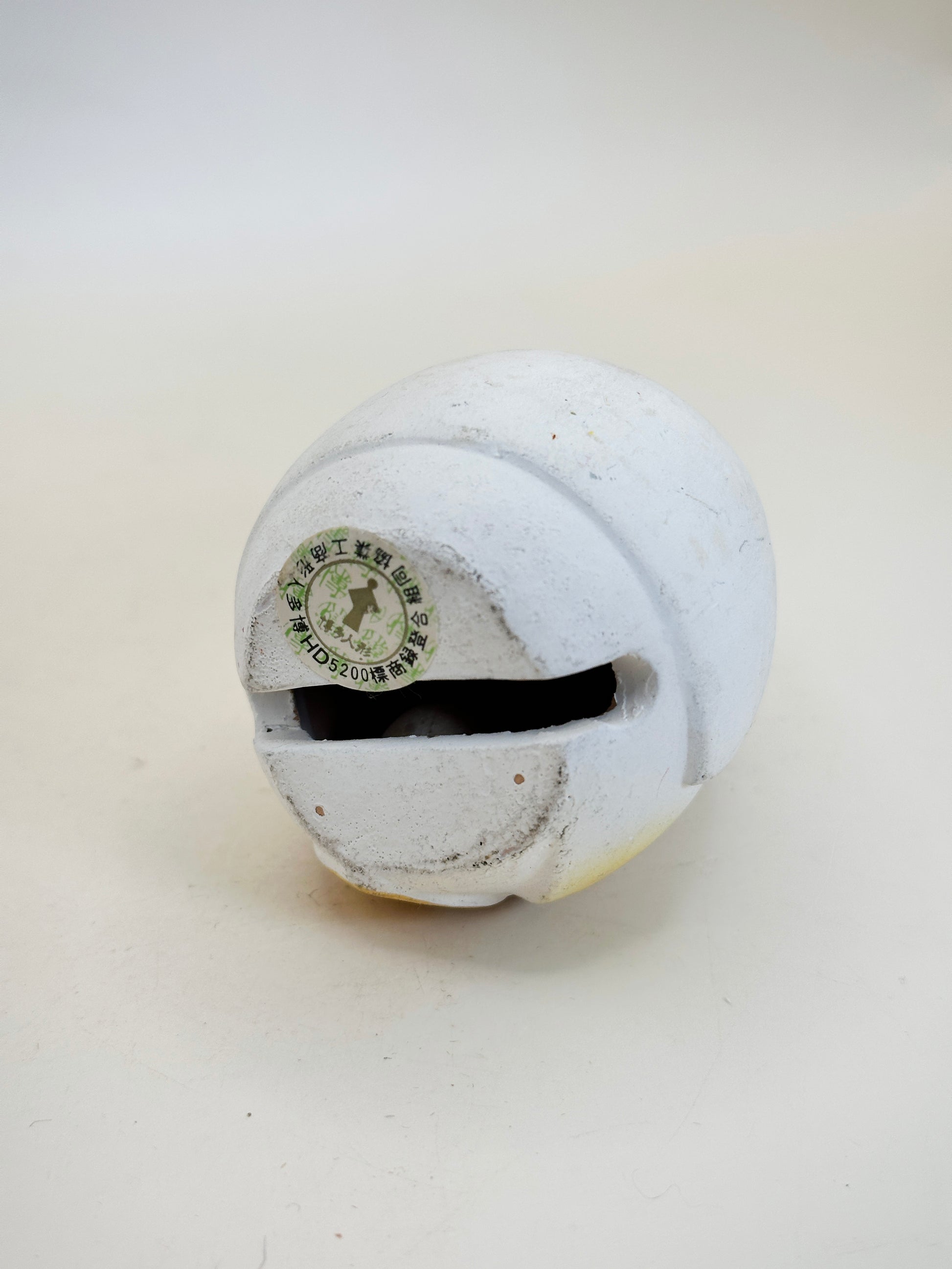 Elle tient délicatement un éventail à la main, soulignant le caractère solennel et propice de sa tenue. Confectionnée dans le style traditionnel Hakata de la préfecture de Fukuoka, la figurine est creuse et produit un doux tintement lorsqu'on la secoue légèrement – un élément ancré dans les traditions folkloriques japonaises où l'on croit que les clochettes dorei éloignent le mauvais sort et portent chance.