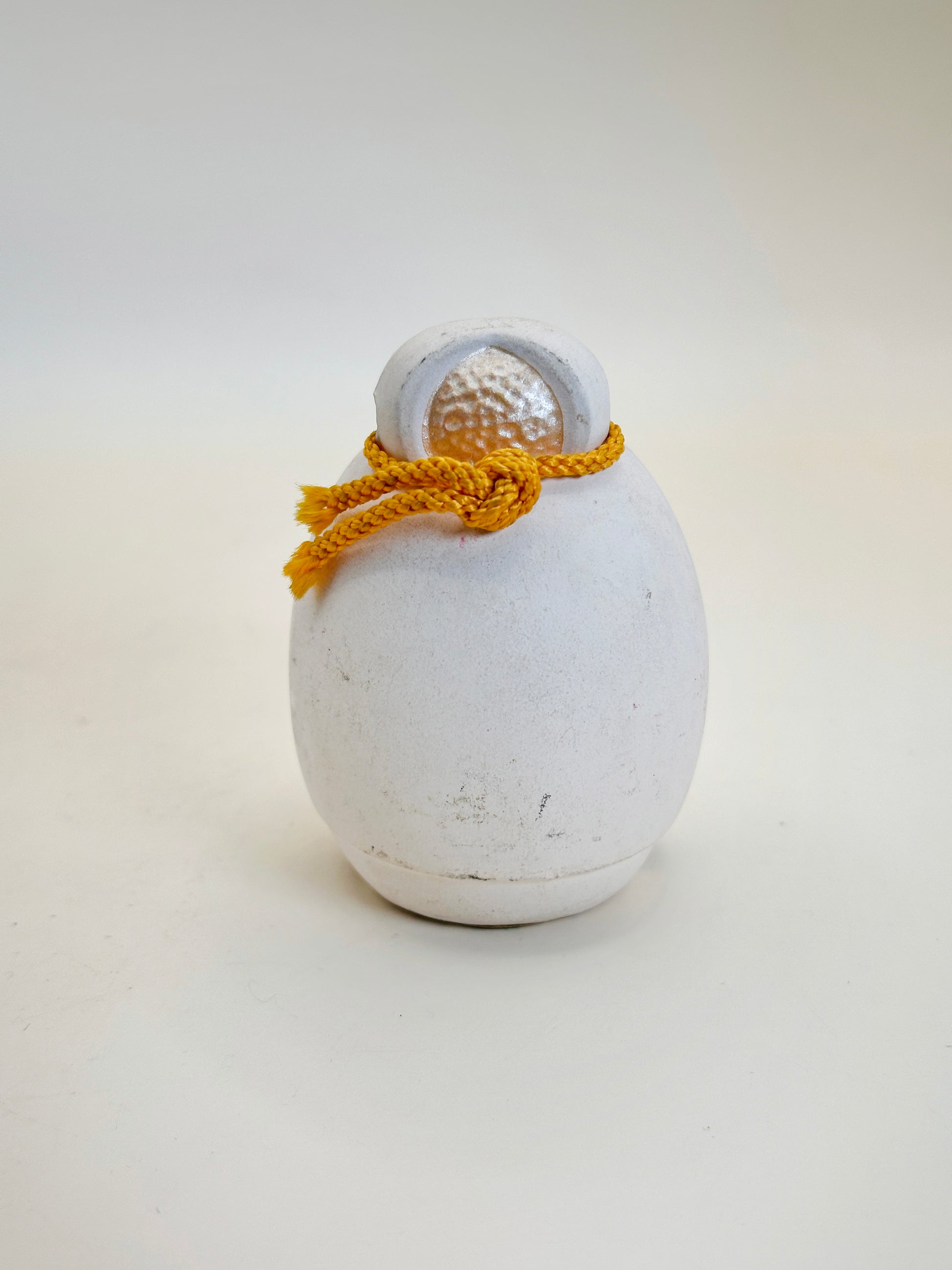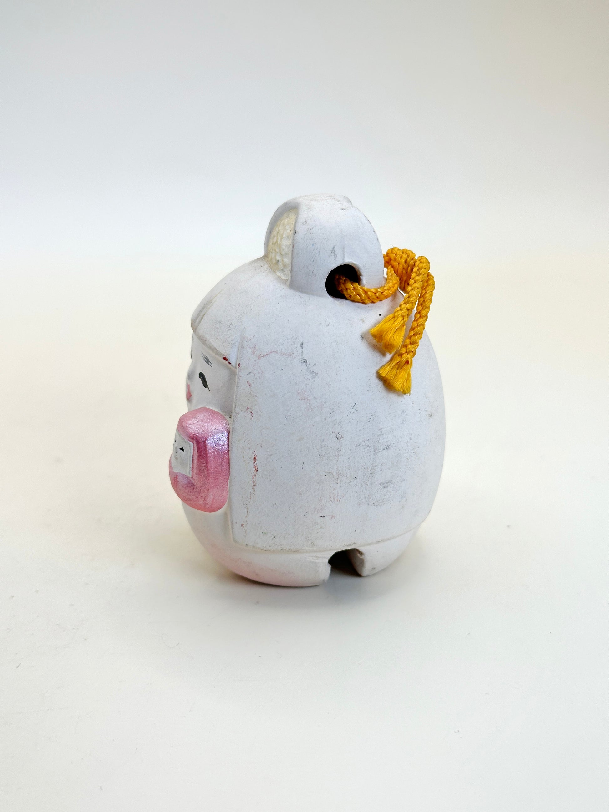 Cette charmante cloche en argile Hakata Ningyō (博多人形) dorei, fabriquée dans le style emblématique des poupées Hakata de Fukuoka, se caractérise par sa finition mate blanche douce et ses délicats détails peints à la main.