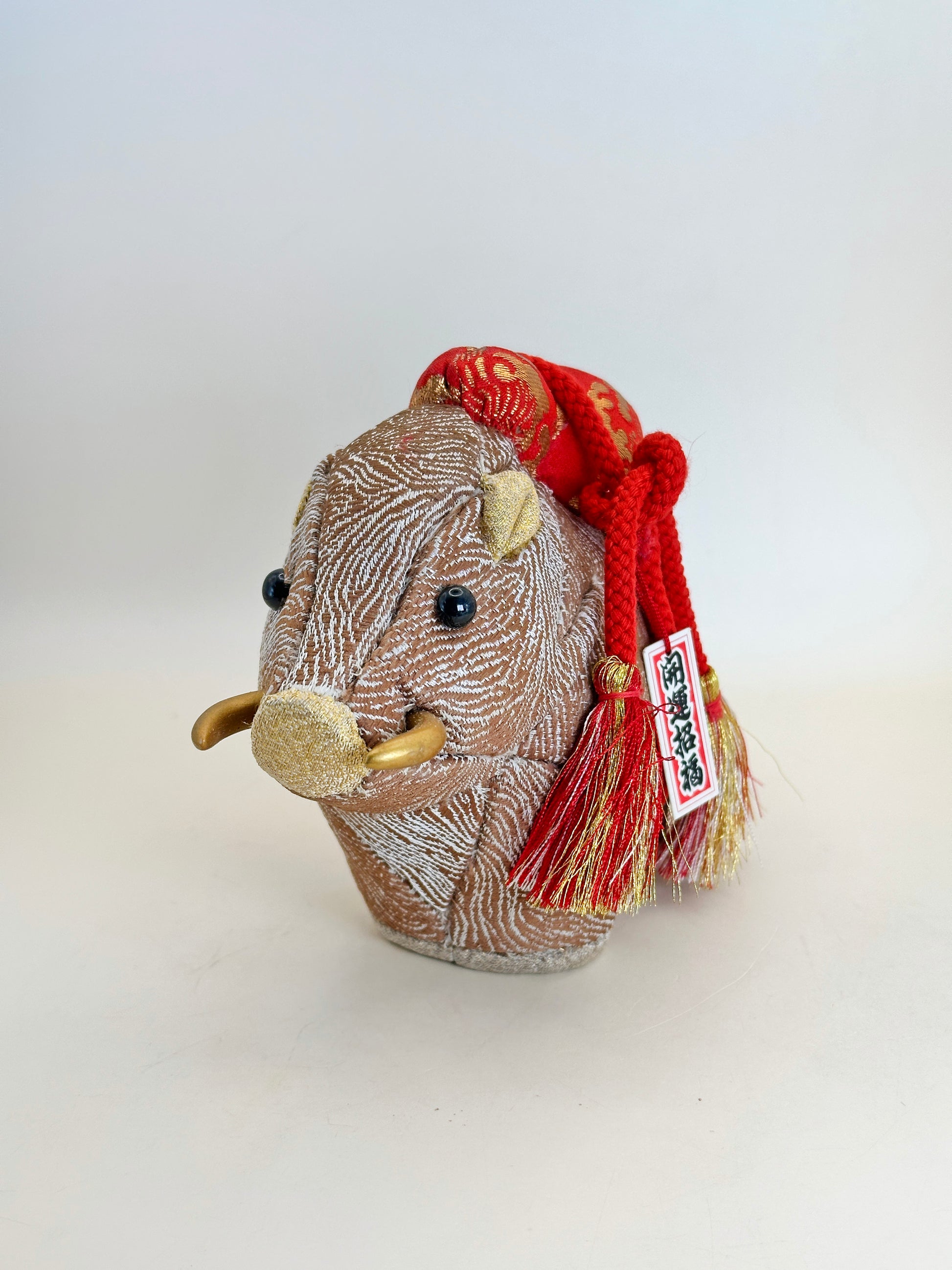 The boar, or inoshishi (猪) in Japanese culture, is a symbol of bravery, protection, and determination. It is also one of the twelve animals of the Japanese zodiac (eto), representing those born in the Year of the Boar. This figure is often displayed as a talisman to ward off evil and invite good fortune.