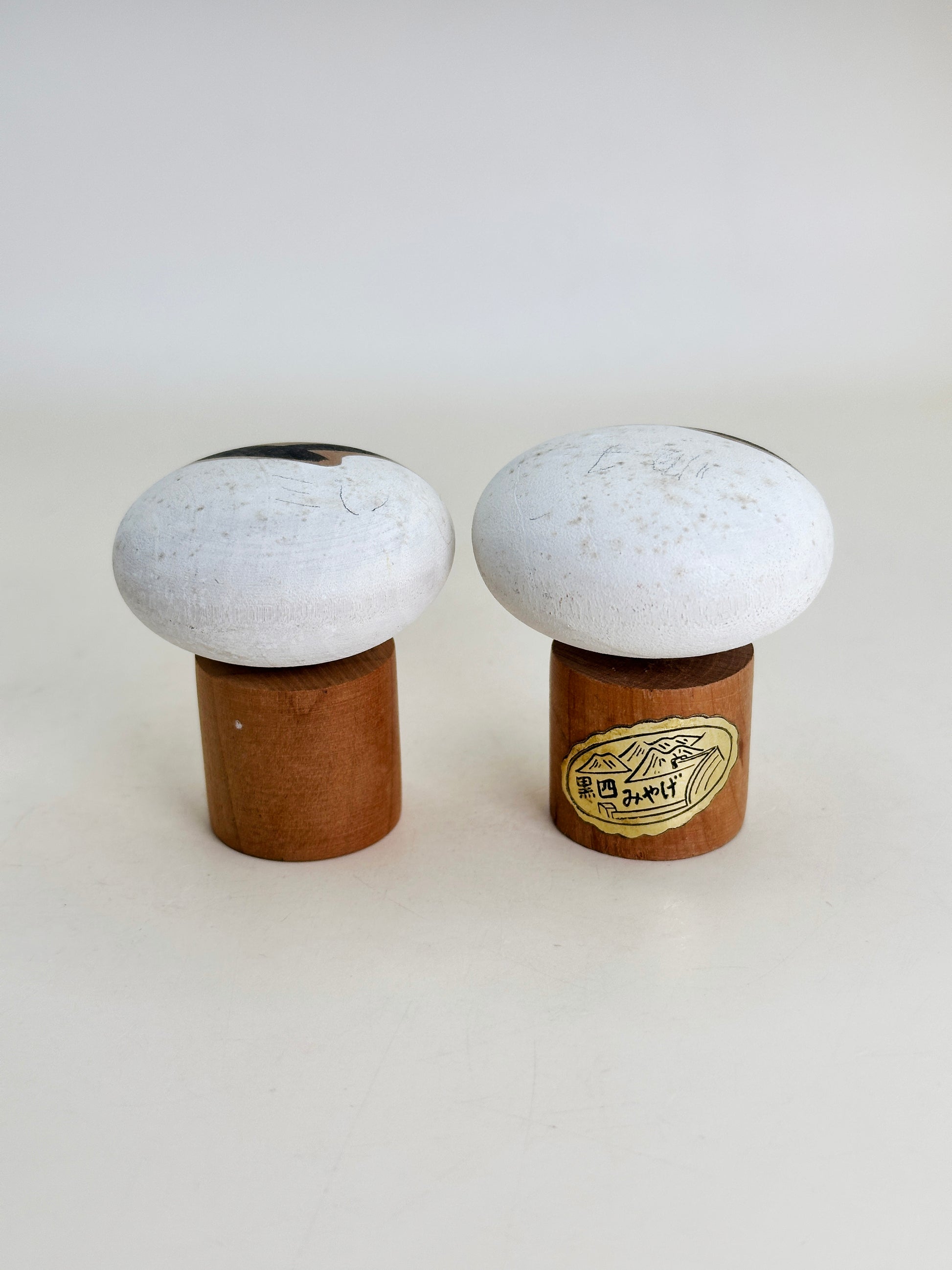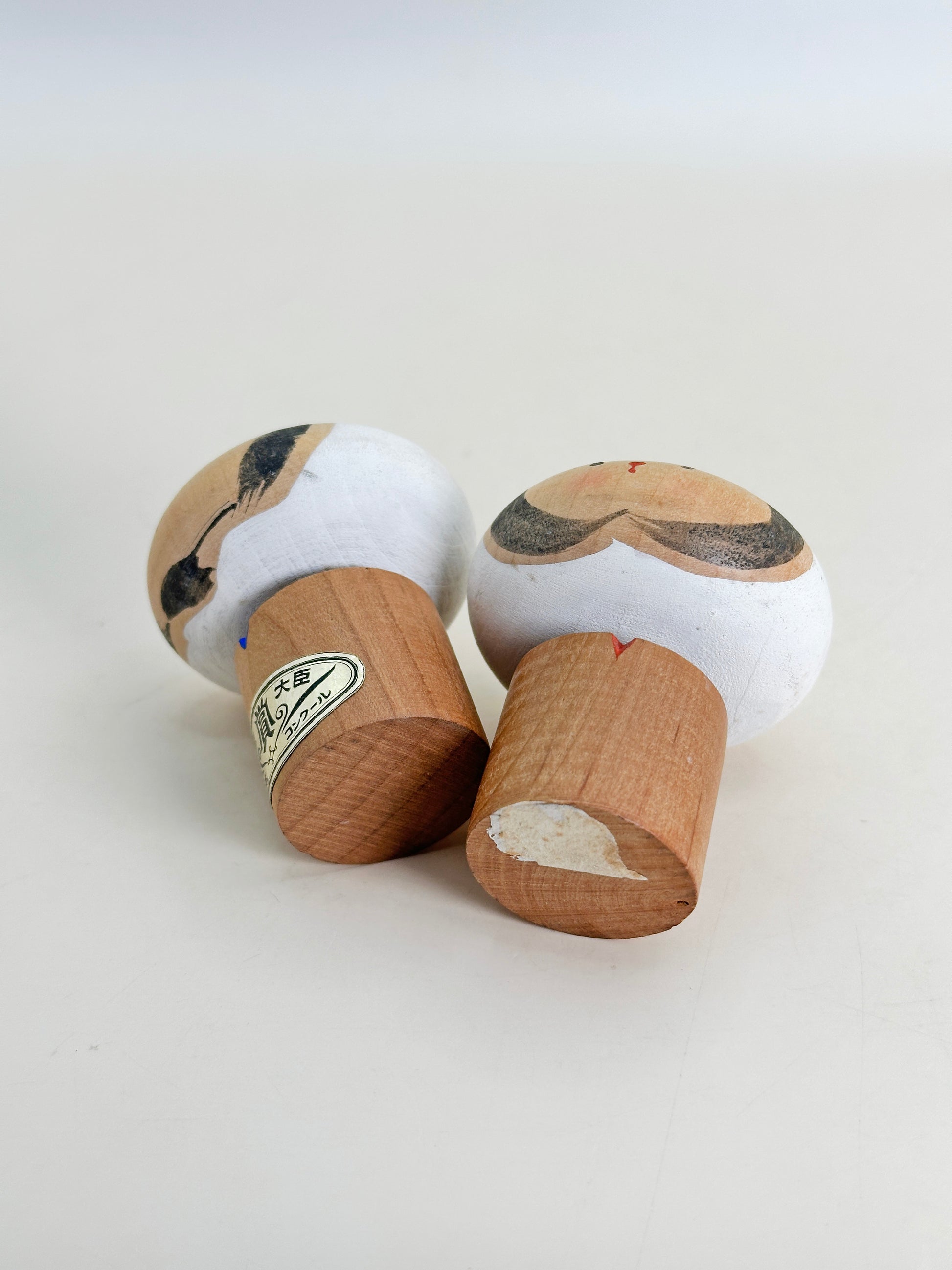 Souvenir kokeshi from sites such as Kurobe Dam were more than simple keepsakes. They symbolized pride in modern achievement while remaining rooted in traditional materials and handcraft. As such, this pair stands as both a collectible work of sōsaku kokeshi and a historical artifact—capturing a moment when Japanese folk art, national progress, and everyday life intersected beautifully.