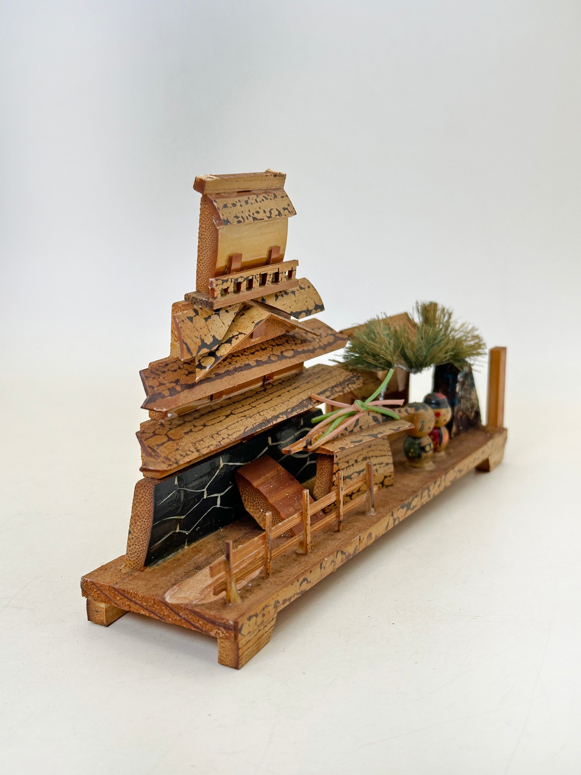 This omiyage bamboo craft depicts Ōyama Castle 大山城, rendered in miniature with remarkable craftsmanship and attention to architectural form.