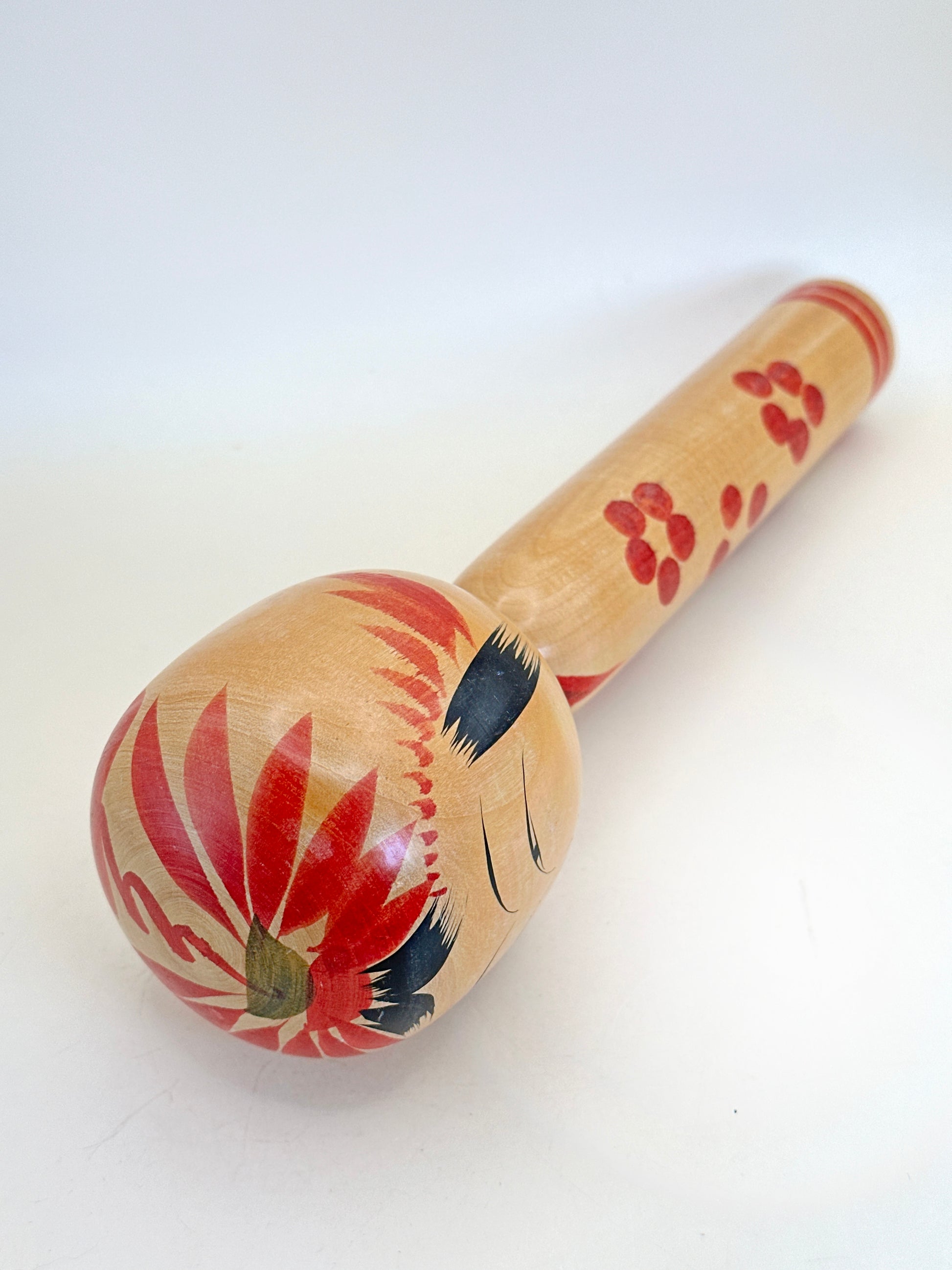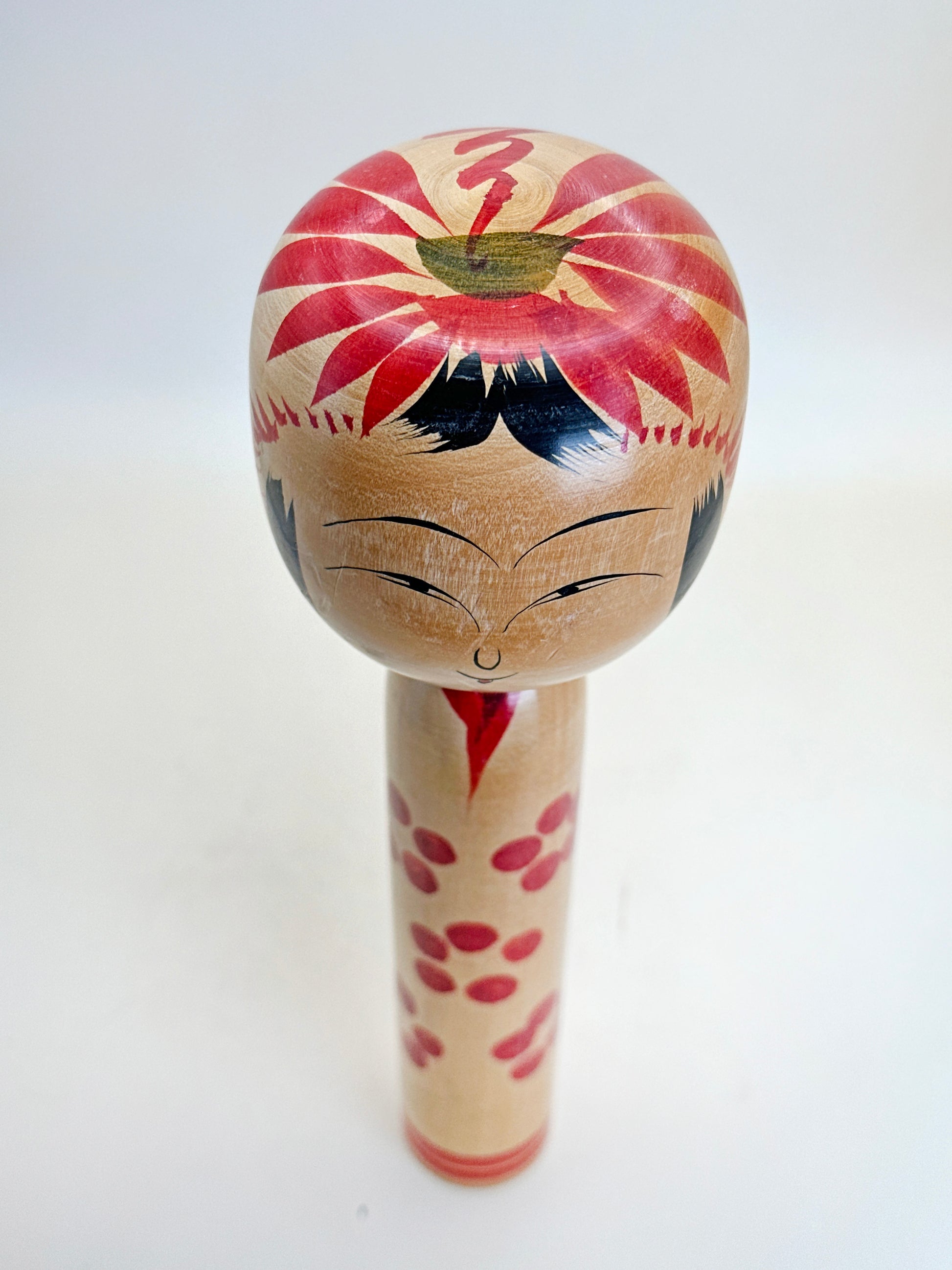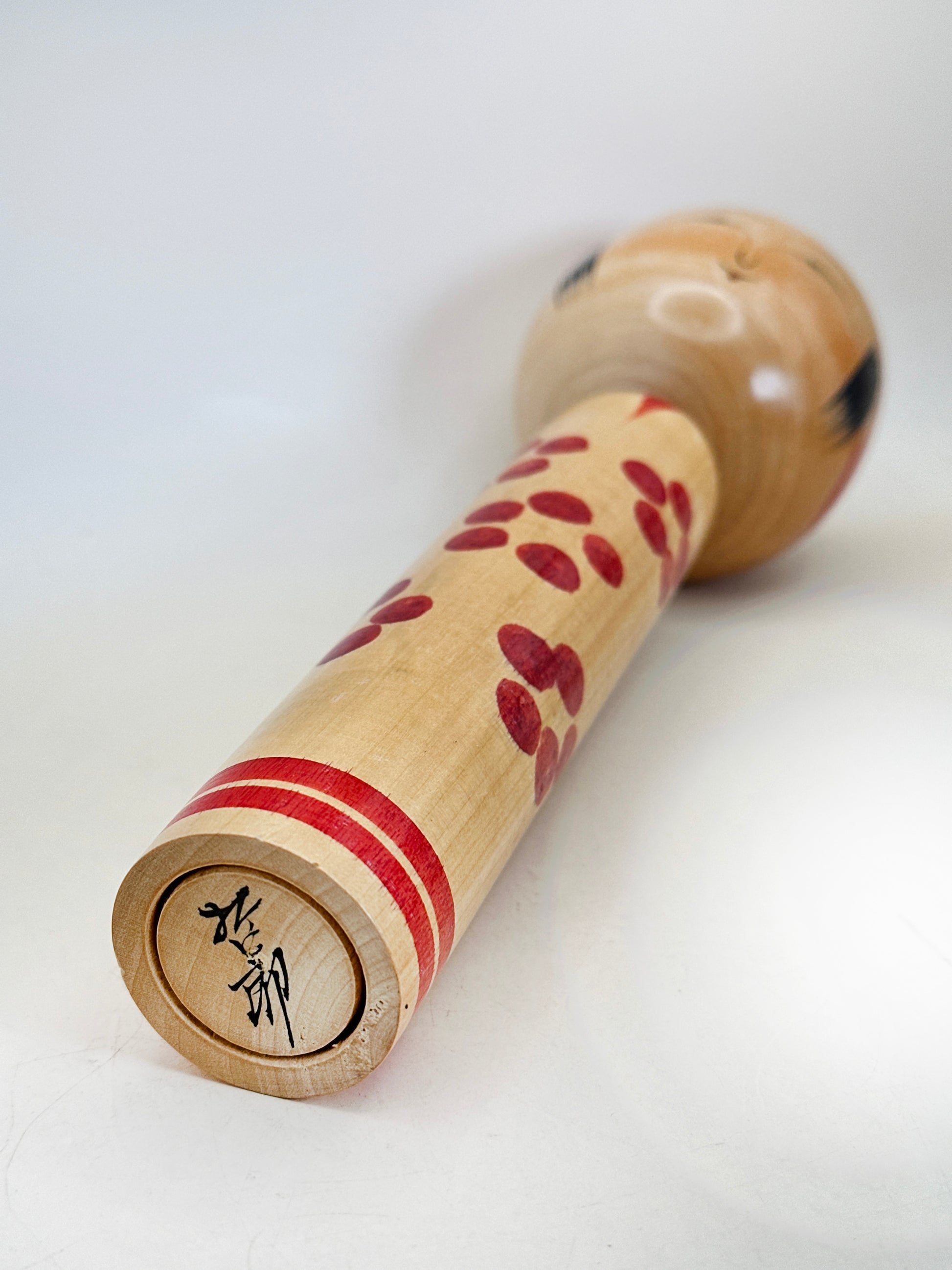This is a classic Togatta-style kokeshi crafted by Tetsuro Sato (佐藤哲郎, 1932–2022), a respected traditional kokeshi artisan from the Miyagi region. His work is characterized by its refined simplicity and warmth, staying true to the aesthetics of the Togatta lineage while showcasing his personal touch.