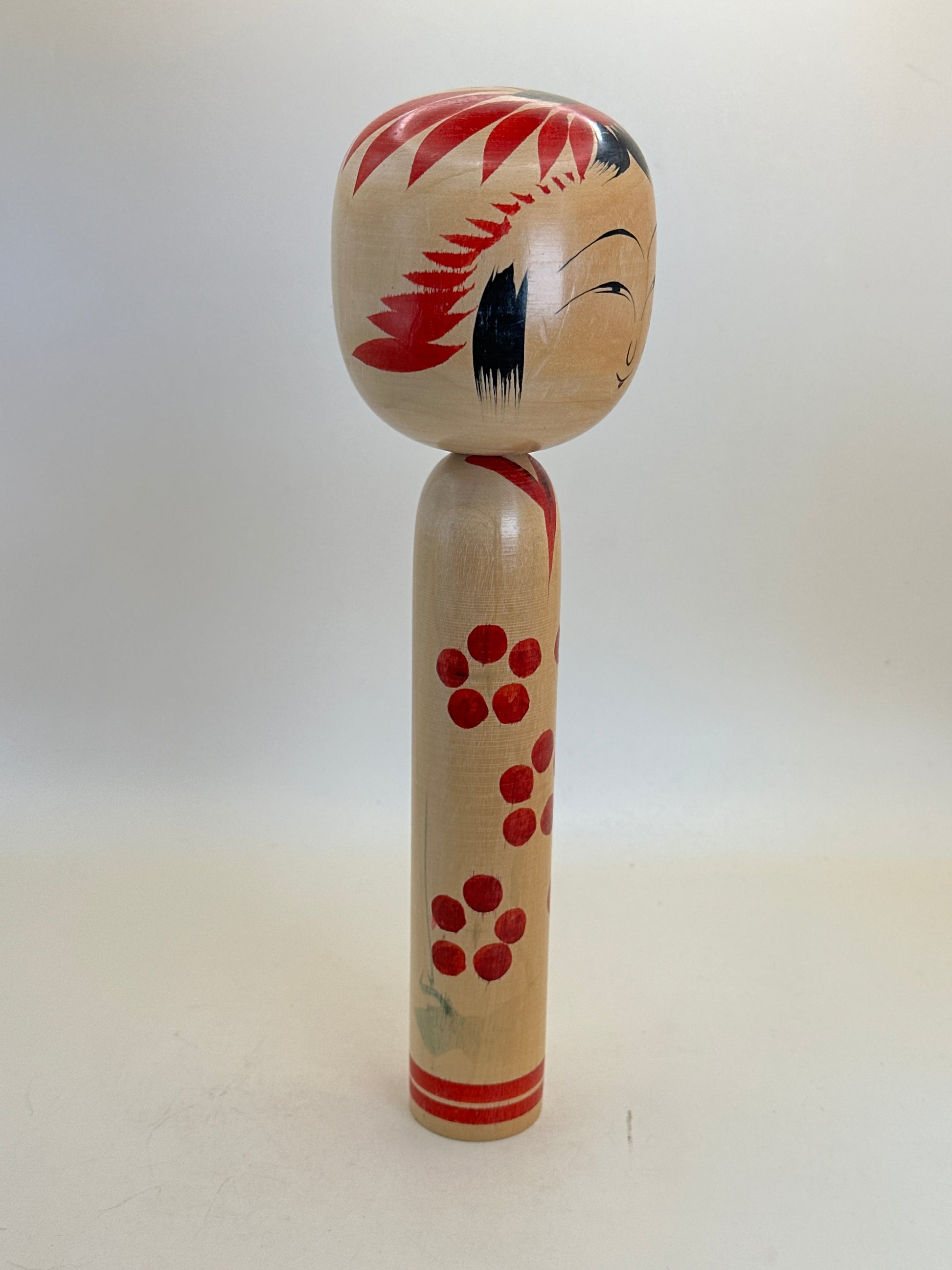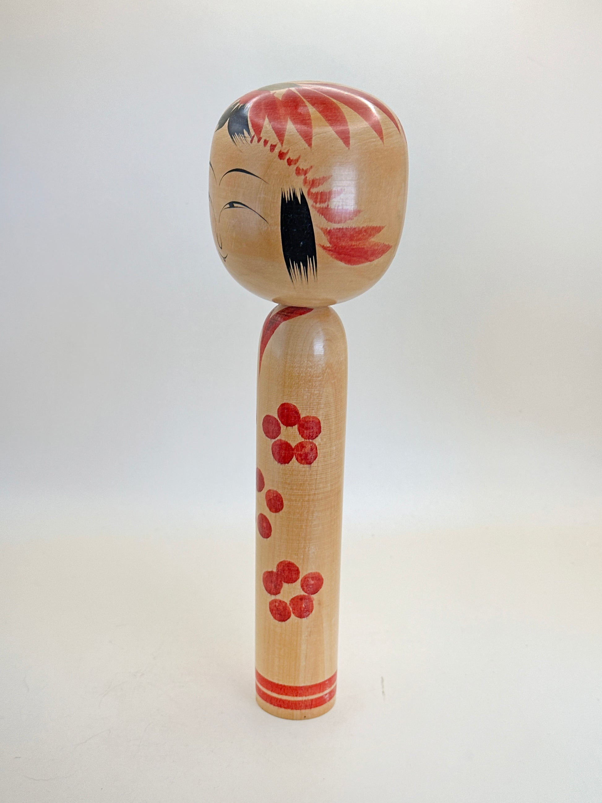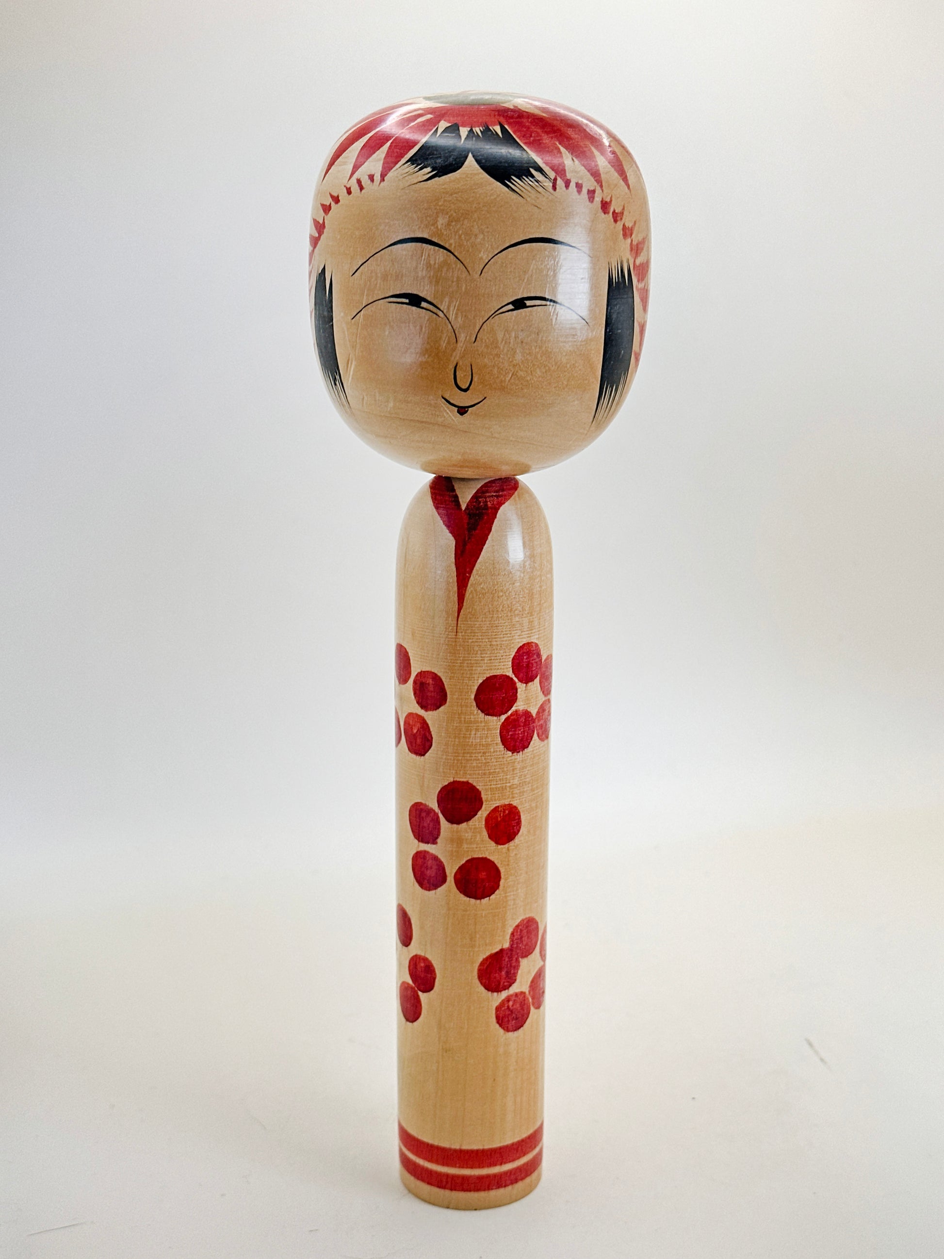 This is a classic Togatta-style kokeshi crafted by Tetsuro Sato (佐藤哲郎, 1932–2022), a respected traditional kokeshi artisan from the Miyagi region. His work is characterized by its refined simplicity and warmth, staying true to the aesthetics of the Togatta lineage while showcasing his personal touch.