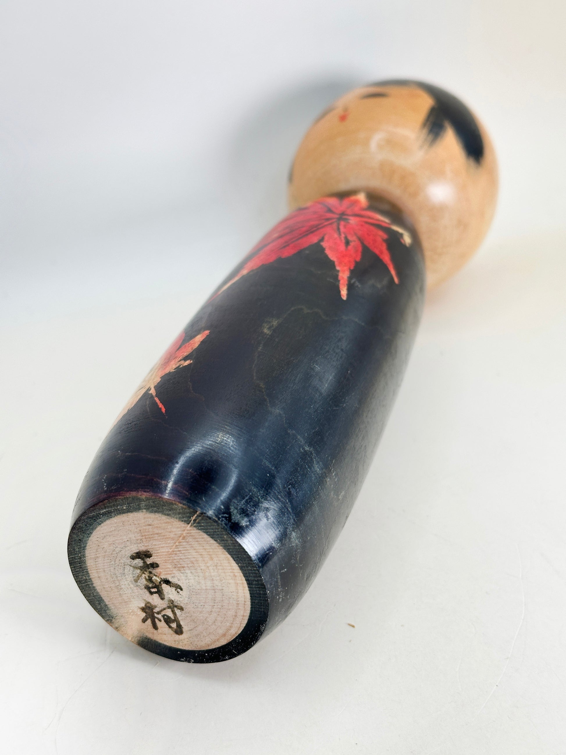 This piece reflects Sato Kōson’s sensitivity to seasonal themes and his ability to balance bold color with quiet elegance. It stands as a contemplative example of mid-to-late Shōwa–era sōsaku kokeshi, where traditional symbolism and modern artistic expression meet in a timeless, emotionally resonant form.