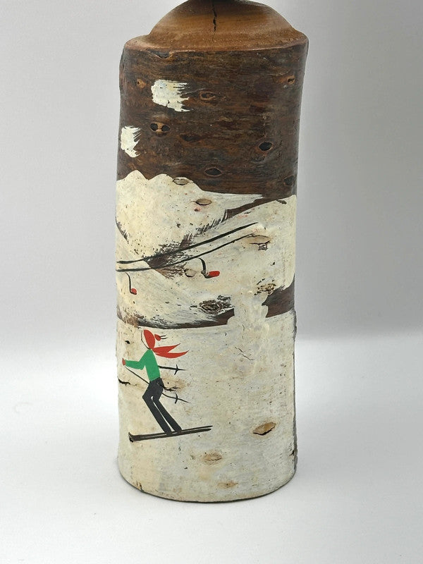 Poupée kokeshi vintage de Zaō Onsen, Yamagata, Yamagata. Zaō Onsen (蔵王温泉) est une célèbre station thermale située sur le mont Zaō, au nord de Honshū, l'île principale du Japon. Le mont Zao est connu pour ses conifères qui s'incrustent et se solidifient en janvier sous l'effet du givre dur, causé par les fortes chutes de neige et les vents glacials. Ces formations sont appelées « monstres de neige » ou juhyo en japonais.