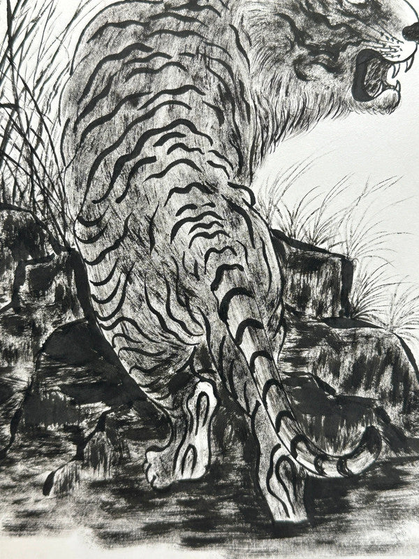 Le tigre symbolise la force, le courage et la protection. Il est souvent associé à la protection contre les mauvais esprits et à la sécurité. Il représente également des qualités telles que la puissance, la bravoure et l'indépendance.