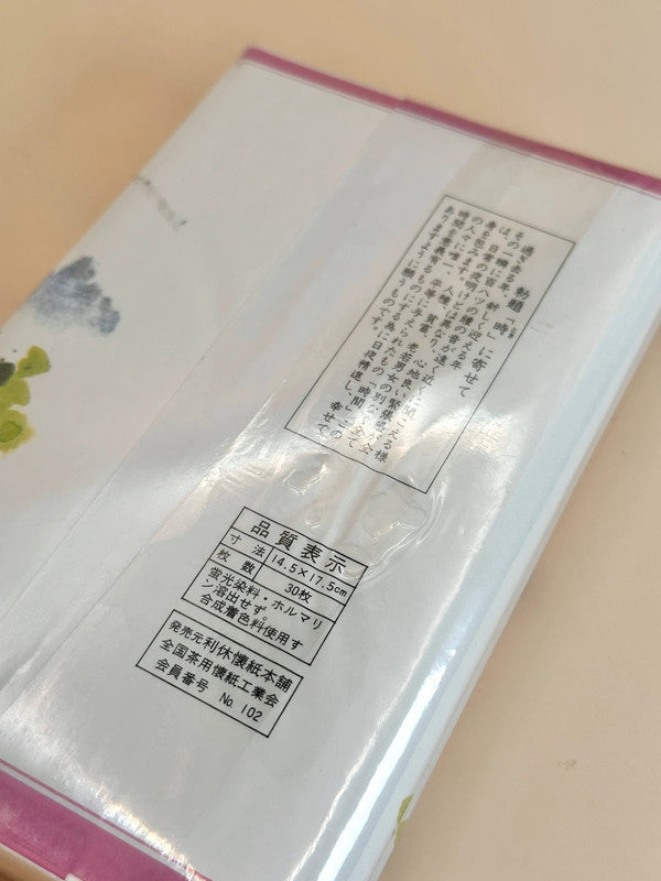 Old product never been used and opened. 懐紙(Kaishi) is a type of Japanese paper, originally carried in the front fold of a kimono, and is still widely used in the Japanese tea ceremony. While kaishi can serve many purposes—such as writing poetry, wrapping small items, or serving sweets—its most refined and culturally significant role is within tea gatherings (茶道 / sadō). In this context, kaishi is used as a surface on which to present seasonal sweets (和菓子), to gently wipe one’s fingers or the edge of a tea bowl, and even to subtly express the host’s attentiveness to seasonal and aesthetic detail.