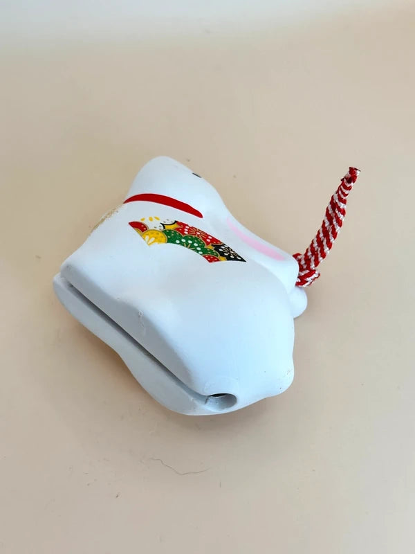 This is a traditional dorei clay bell crafted in the shape of a rabbit to celebrate 2023, the Year of the Rabbit in the Japanese zodiac. Made from clay and painted in a soft white, it carries a gentle and welcoming expression that reflects the rabbit’s symbolism of peace, harmony, and prosperity.