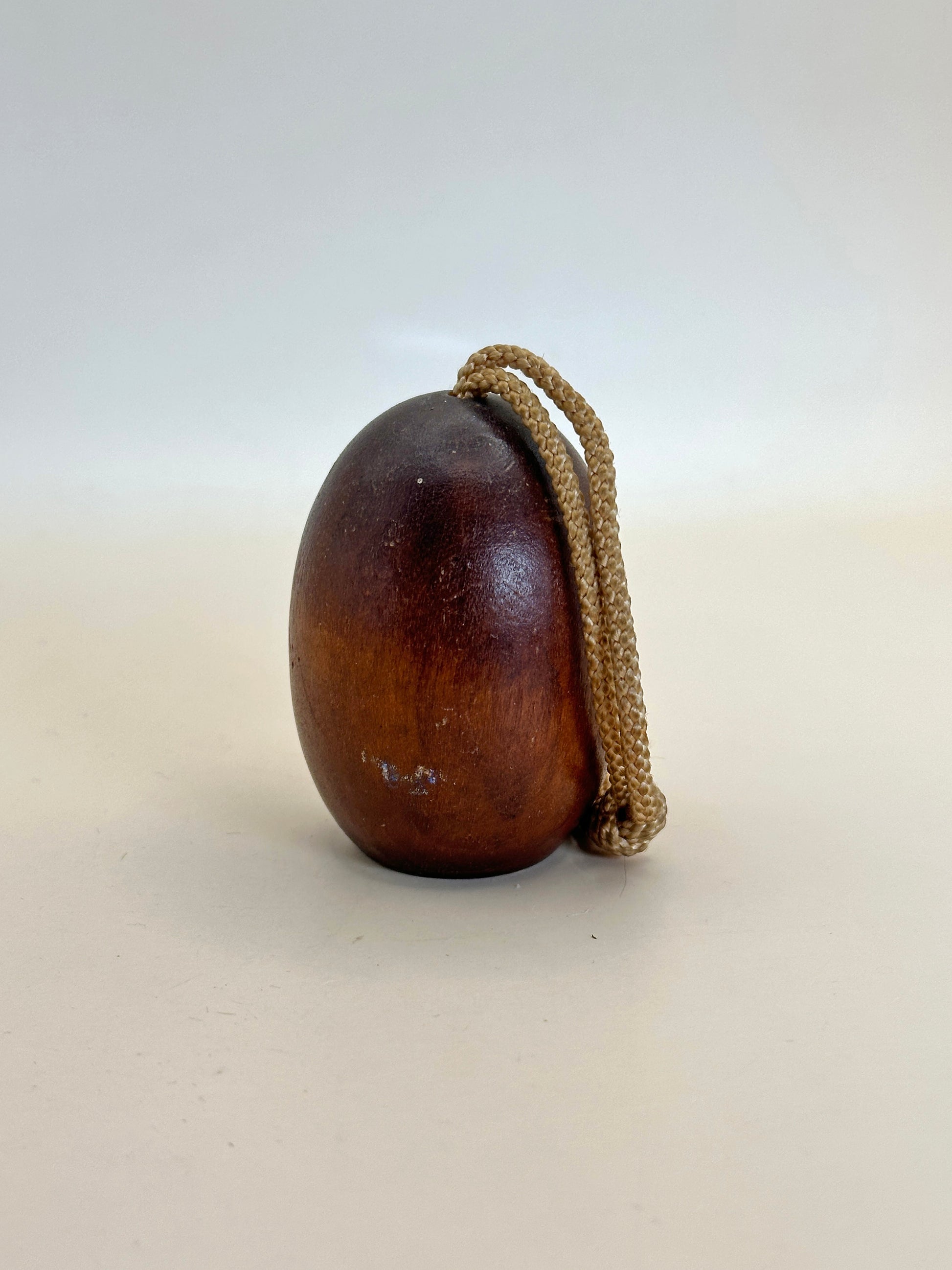 Unlike clay bells (dorei), this wooden suzu contains a small metal pellet that creates a soft, gentle jingle when shaken. These bells are often sold as omiyage (souvenirs) at local shrines or roadside shops, particularly in spiritually significant or remote regions like Shionomisaki, which is known for its dramatic coastline and historical lighthouse — a site revered for its spiritual protection of travelers and fishermen.
