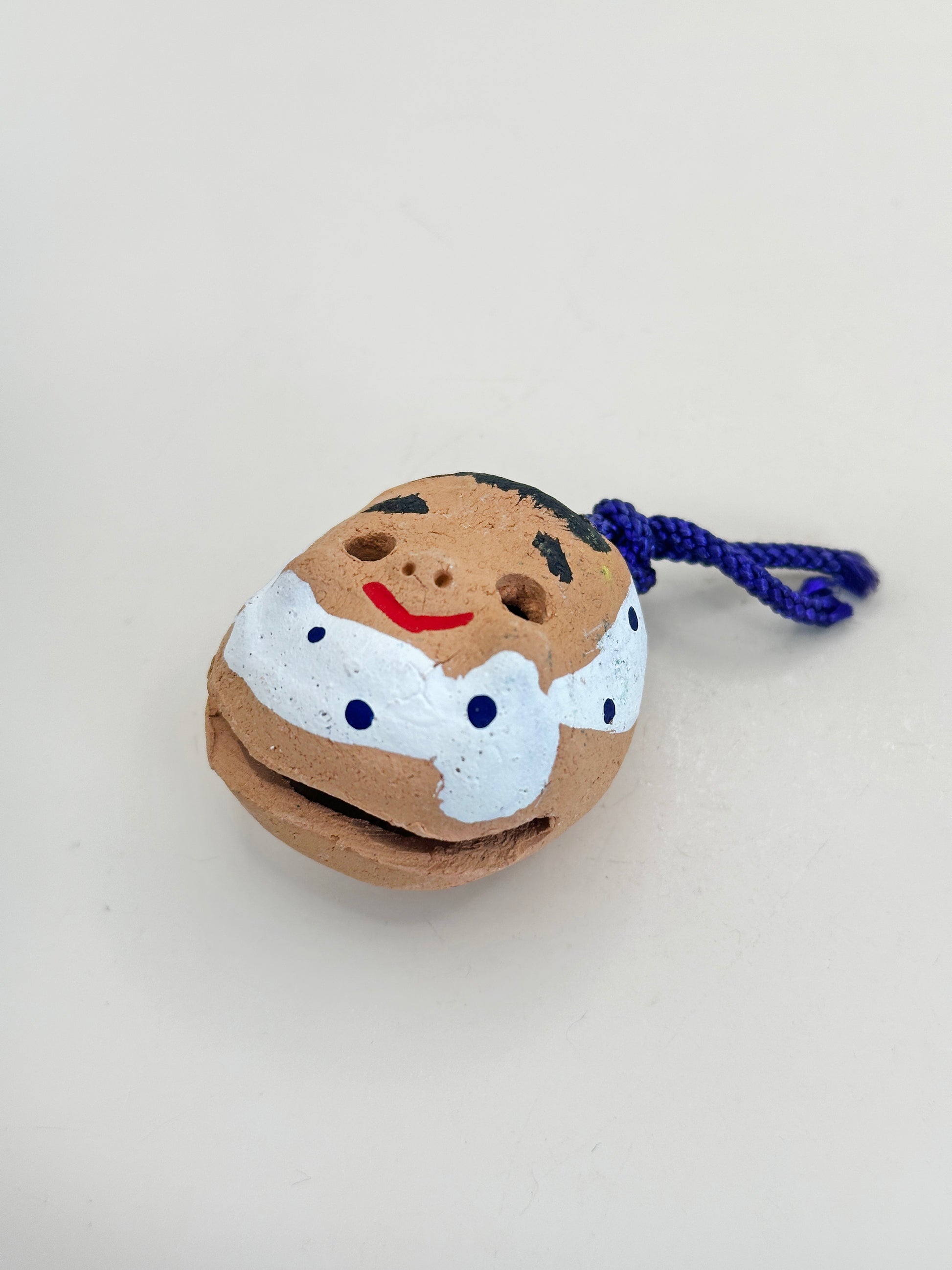 This dorei (clay bell) features the beloved characters Hikoshan 彦しゃん, iconic figures deeply associated with Kumamoto Prefecture in southern Japan.