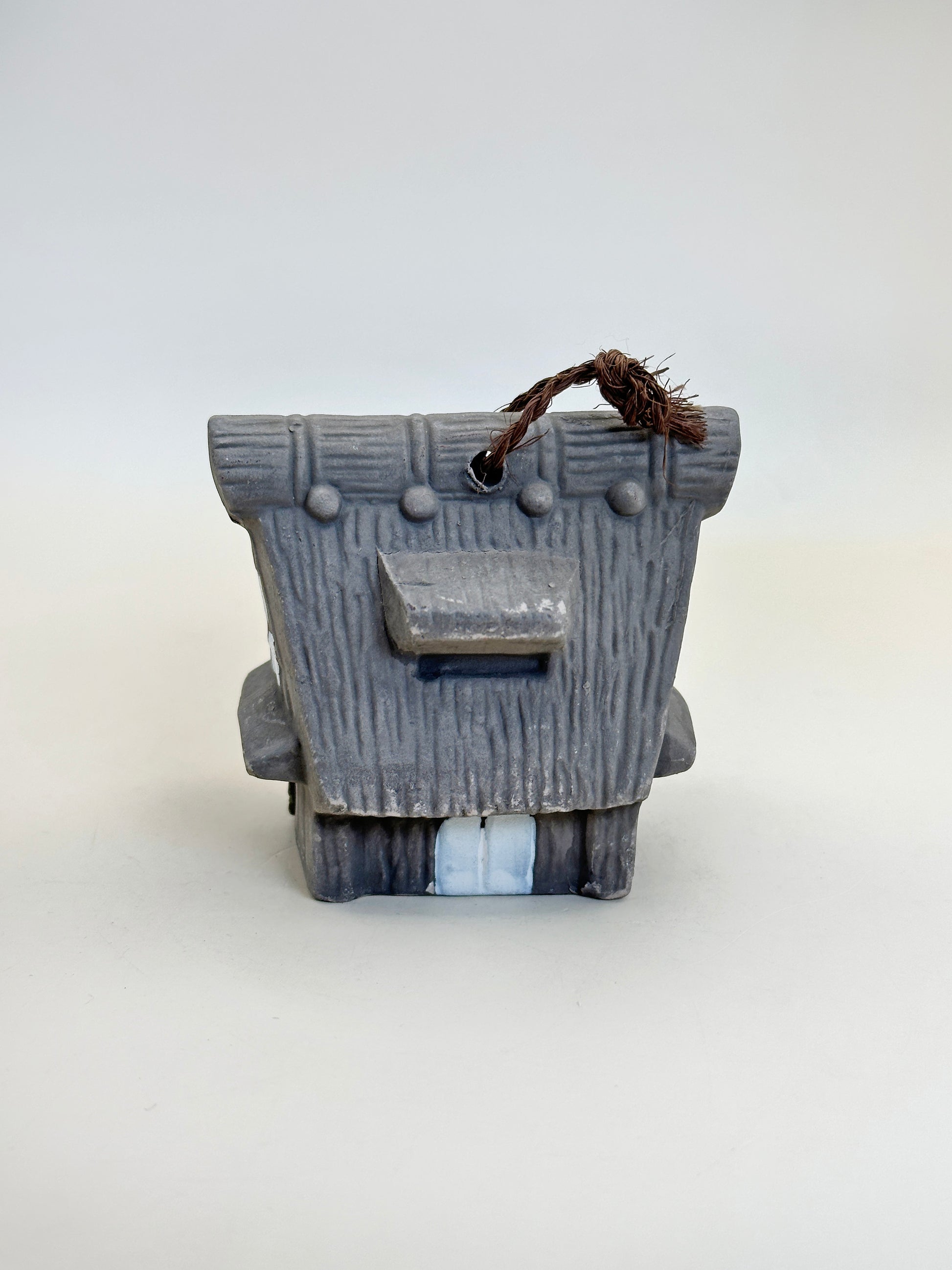 This unique dorei (土鈴) clay bell is shaped in the form of a Gasshō-zukuri (合掌造) house, a traditional thatched-roof farmhouse style found in the mountainous region of Hida (飛騨) in Gifu Prefecture. Carefully handcrafted in rustic tones with white-painted window details, the bell captures the charm and character of Japan’s rural architectural heritage.