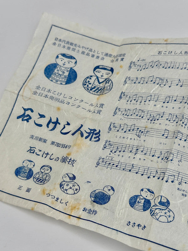 Vintage Stone Kokeshi from 1970s with the original paper and paper box.