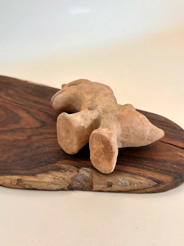 This charming clay horse is a handcrafted haniwa (ancient Japanese clay figure) made by Sakai Minato-yaki kiln master (堺湊焼) Tsushio Kichiemon (津塩吉右衛門). Inspired by the unearthed haniwa artifacts near the Nintoku Emperor's tomb in Sakai City, Osaka, this piece recreates the image of a naked haniwa horse, a rare type uncovered in this region. Unlike the more common haniwa horses equipped with decorative harnesses, the ones excavated here depict a simple, unadorned form — a pure symbol of ancient pastoral life.