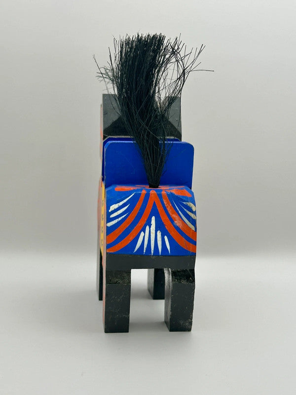 Vintage folk toy. The horse of good fortune Miharu Goma, it is believed that black horses are charms for a safe and easy birth and the raising of strong, healthy children, while white horses are amulets for longevity and a good retirement.