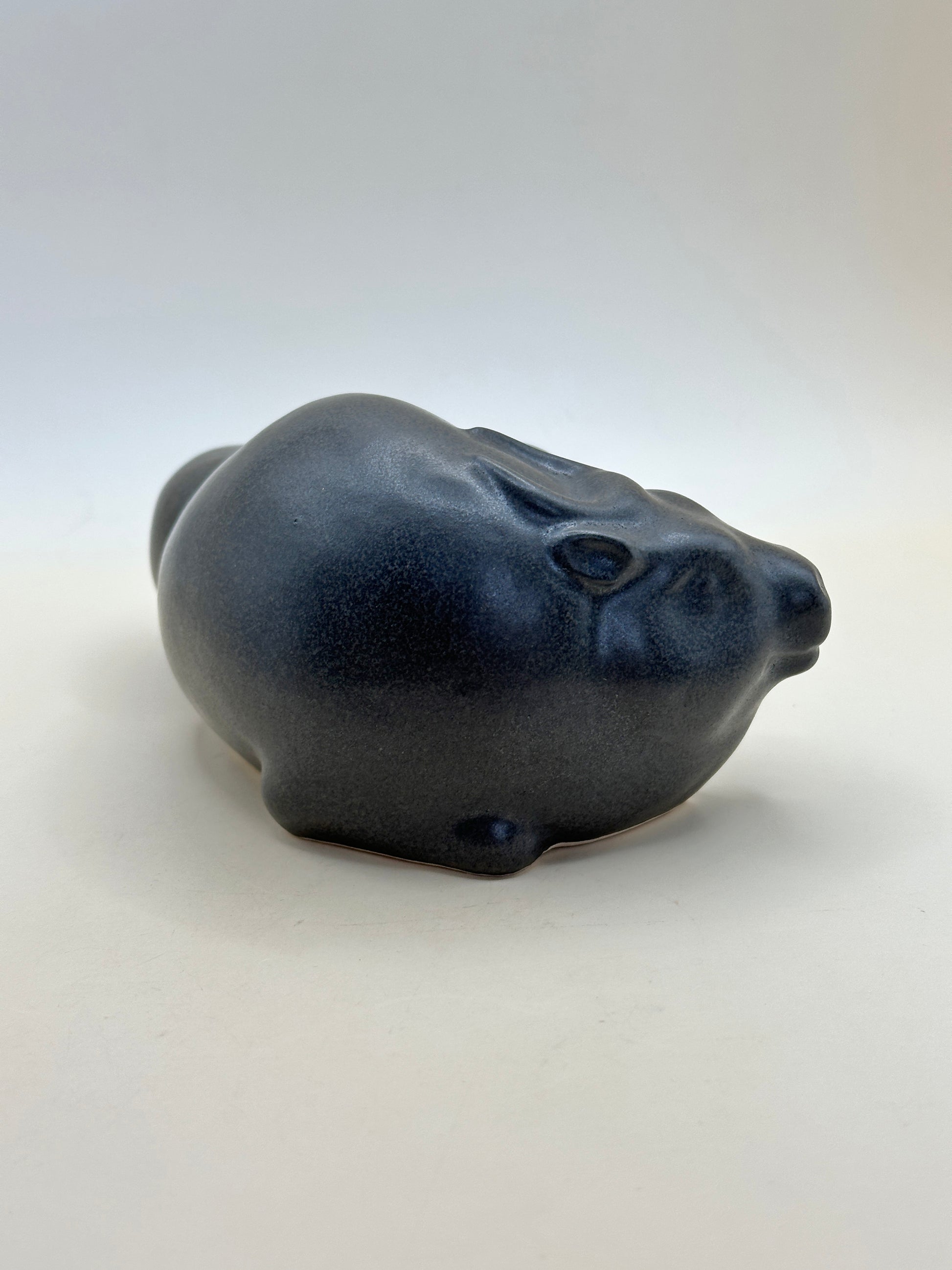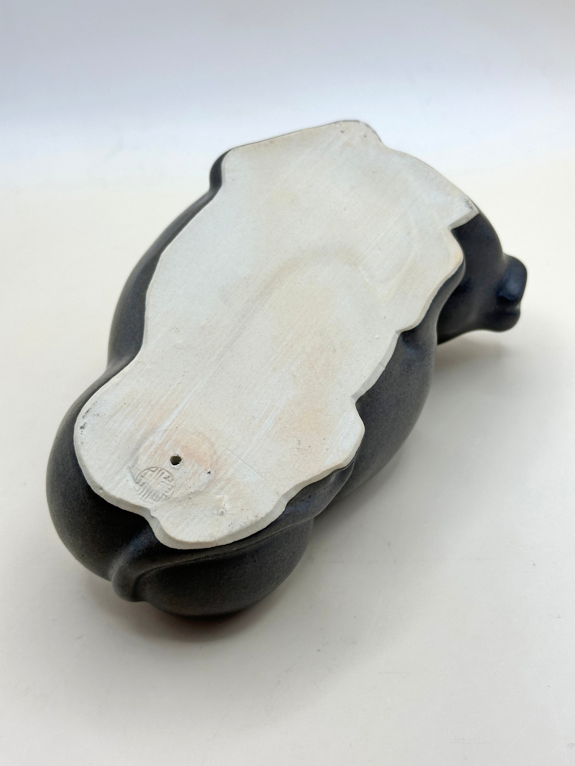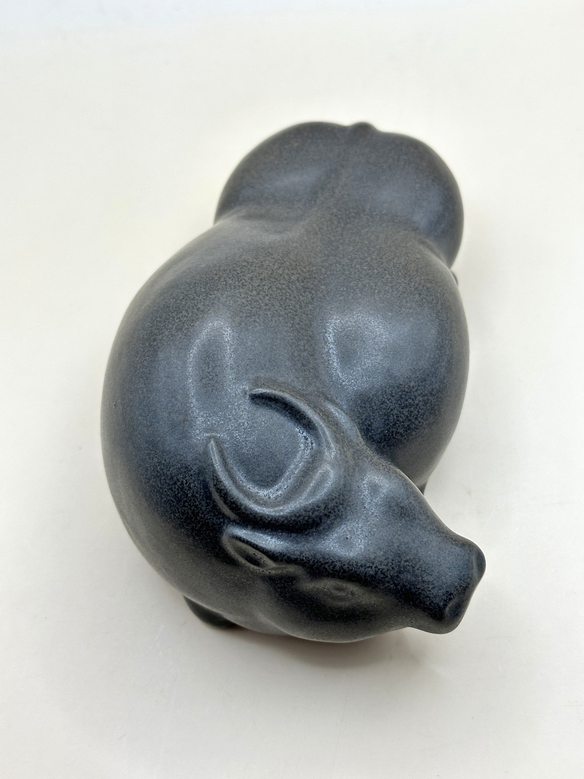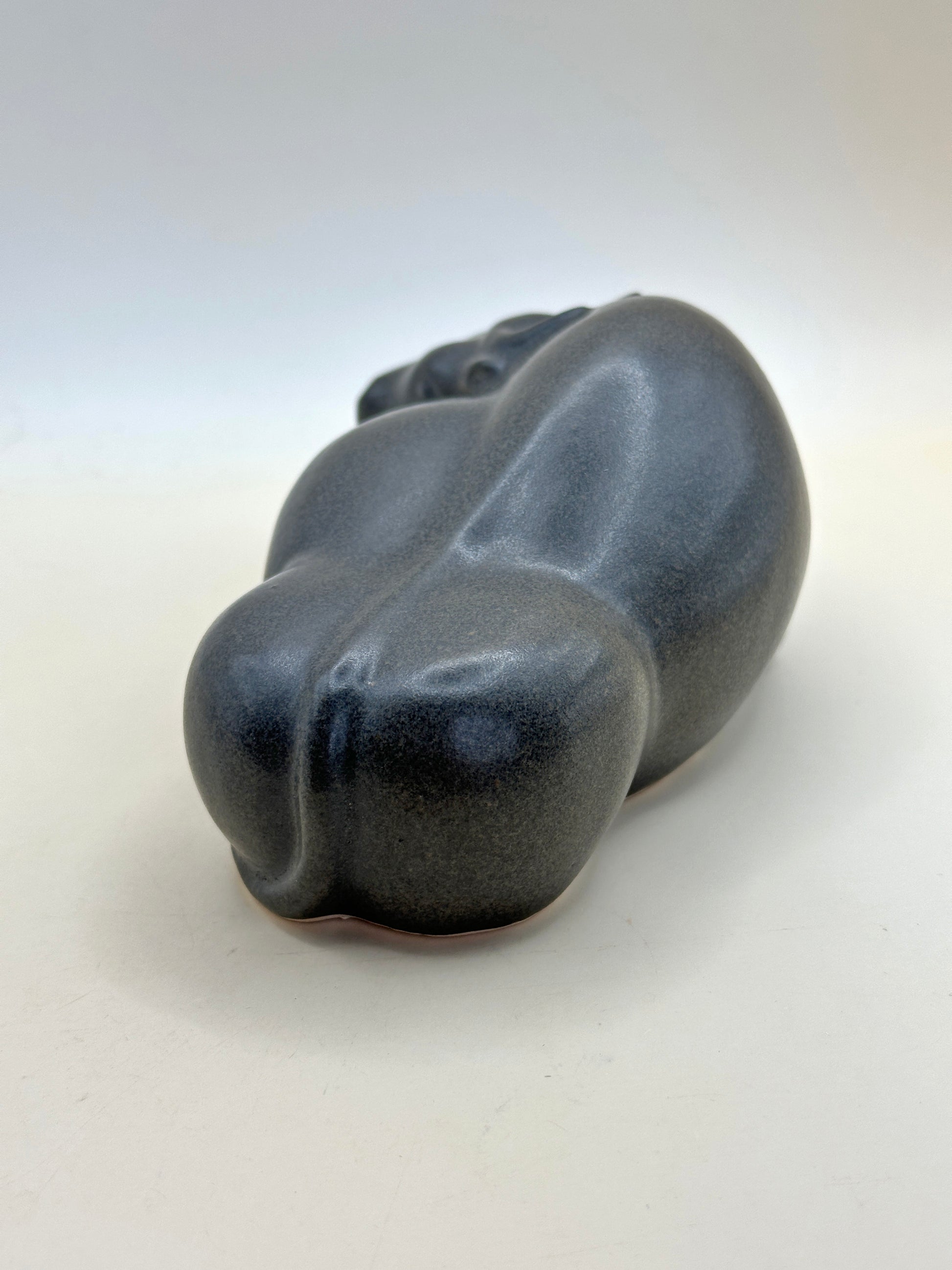 The ox (ushi, 牛) is a symbol of perseverance, diligence, and prosperity, and this reclining figure evokes a calm, grounded energy. Sculpted with smooth, flowing lines and finished in a deep matte black glaze, it expresses quiet strength and refined Japanese aesthetic sensibilities.