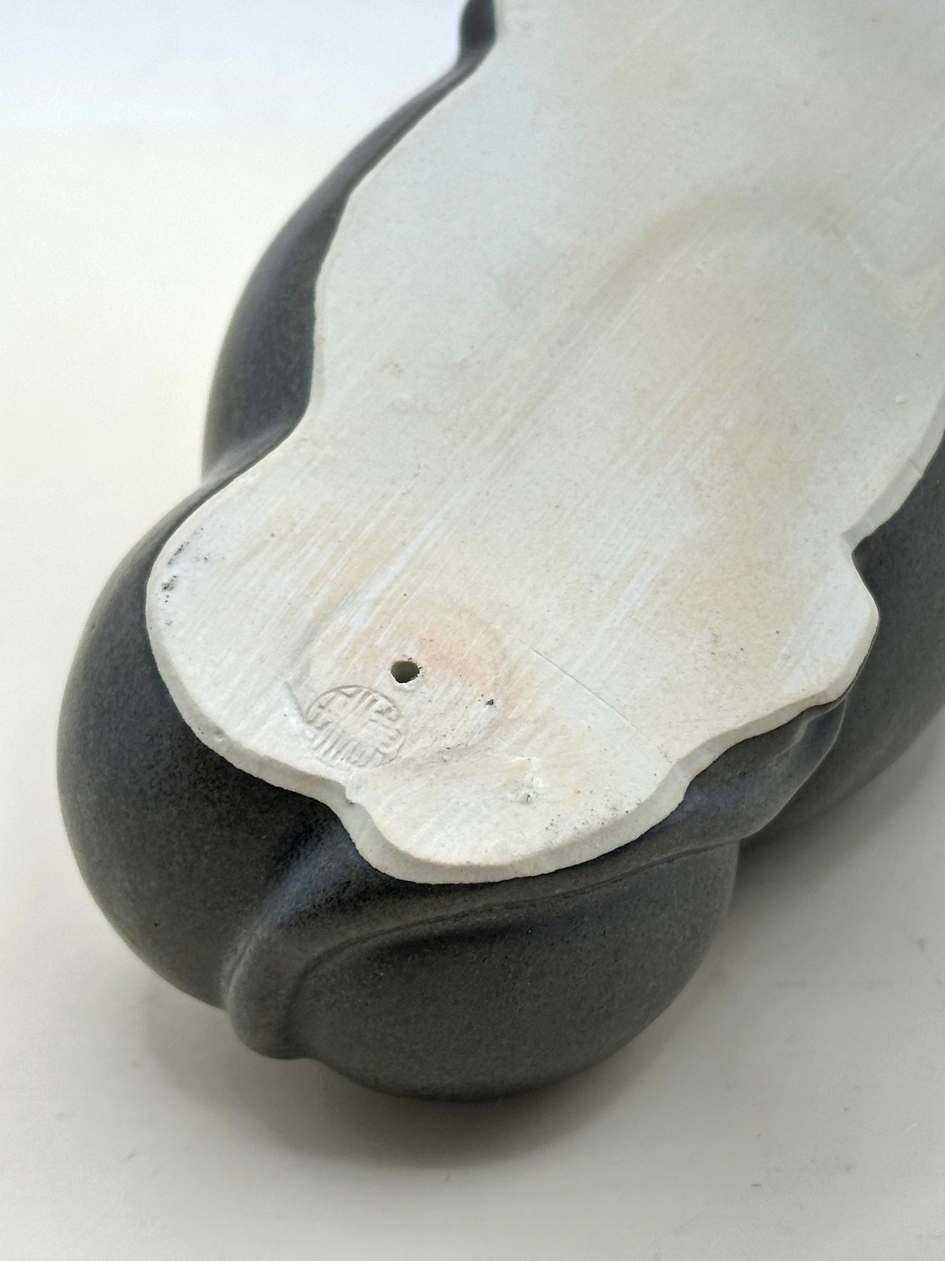This black ceramic ox figurine, titled “Tenjin-ushi” (天神牛), is a dignified representation of the ox from the Japanese zodiac (Eto). Crafted by the renowned Kyoto workshop Heian Manjudō (平安萬珠堂), this piece belongs to the Shōfuku Eto (招福干支) series—auspicious zodiac figures traditionally displayed for good fortune and seasonal celebration.
