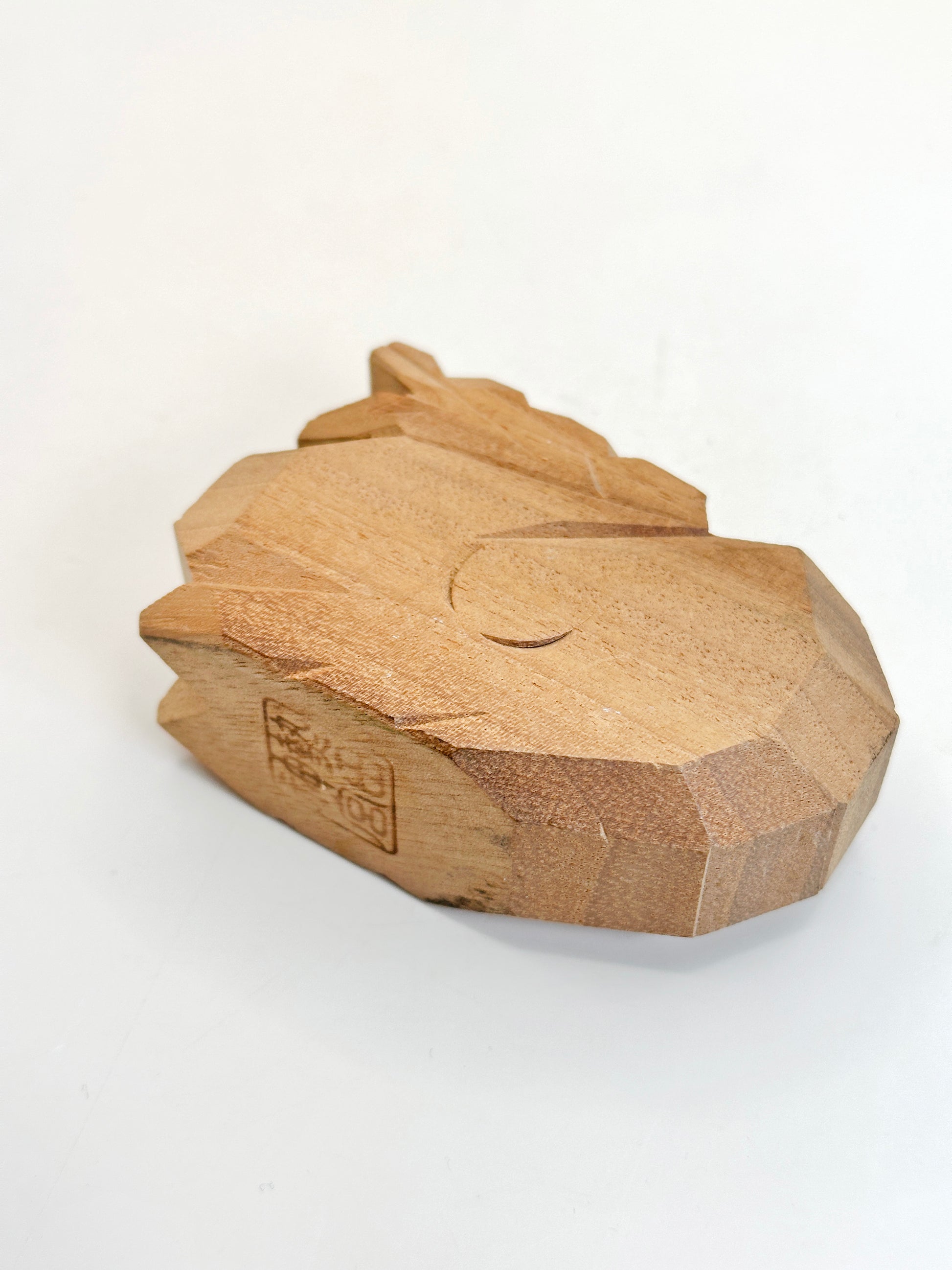Carved from natural wood using the Ittobori (一刀彫) technique, this figurine reflects the hallmark style of sharp, angular cuts and faceted surfaces that bring out the raw beauty of the wood. The minimalist design captures the bold essence of the dragon—its head raised, mouth open, and form stylized with a geometric sense of movement and power.
