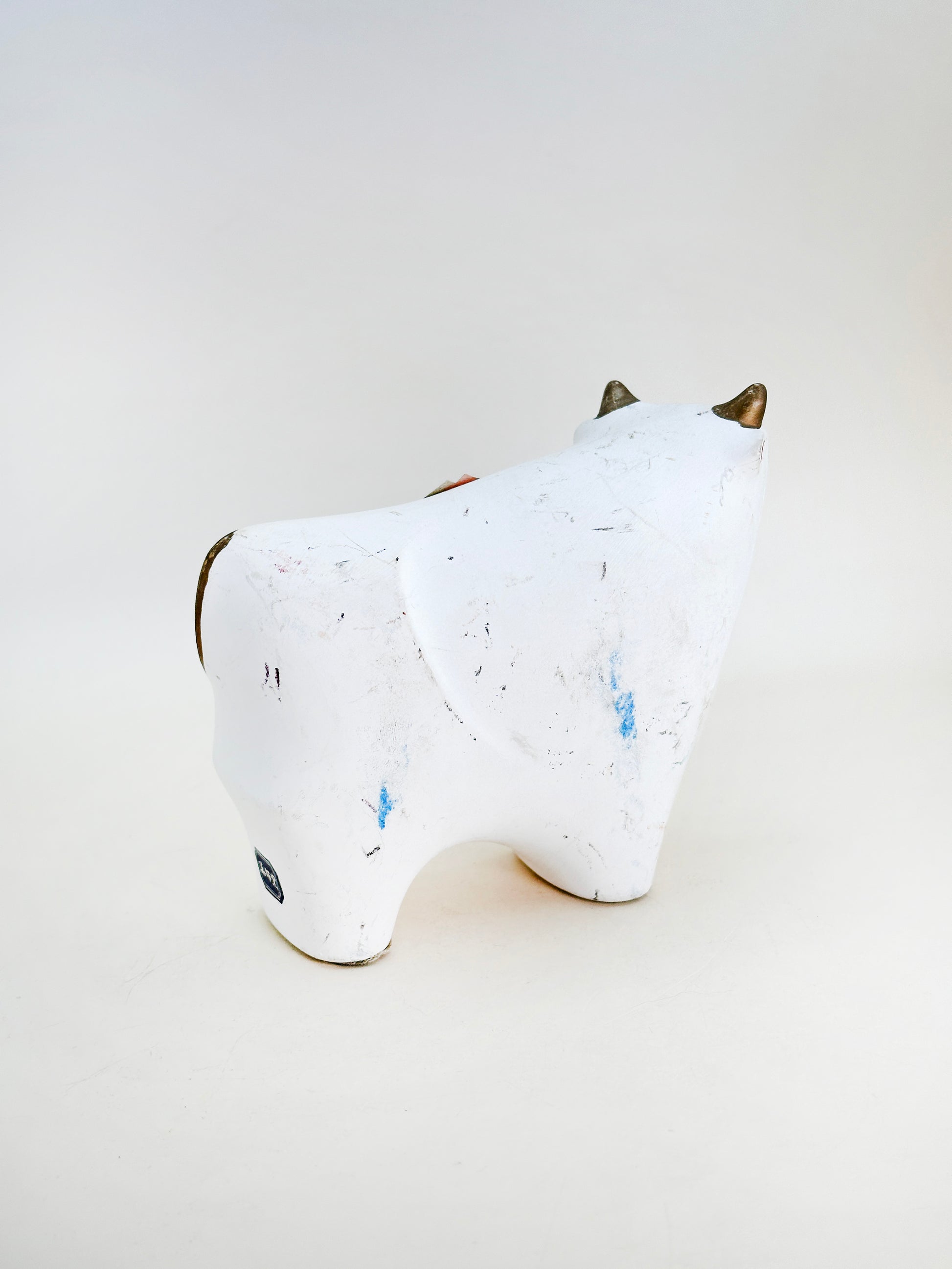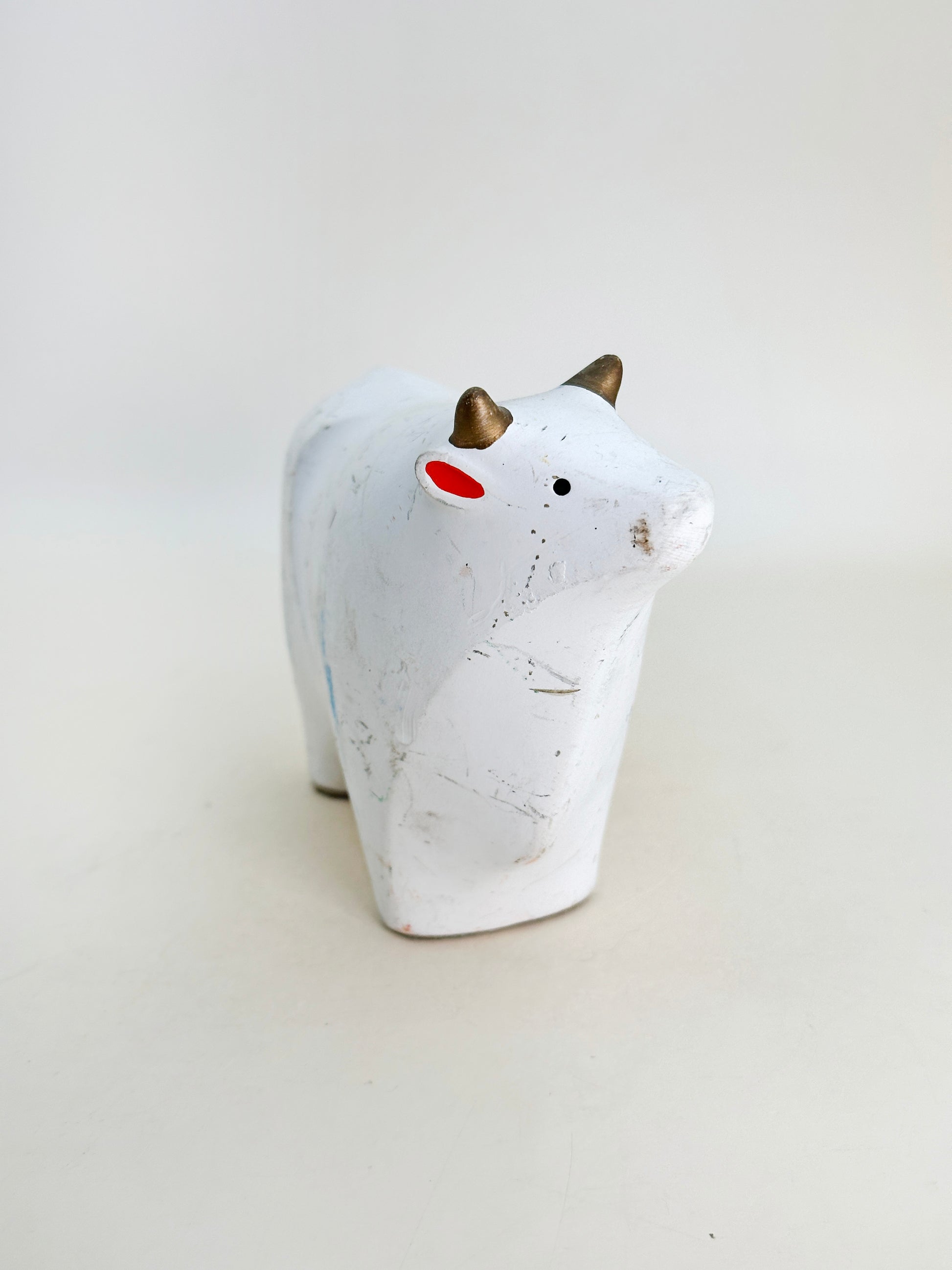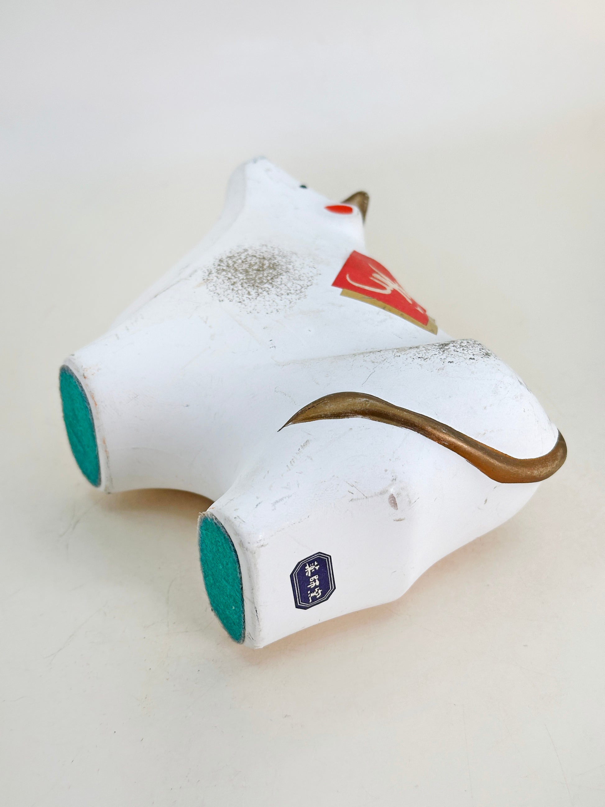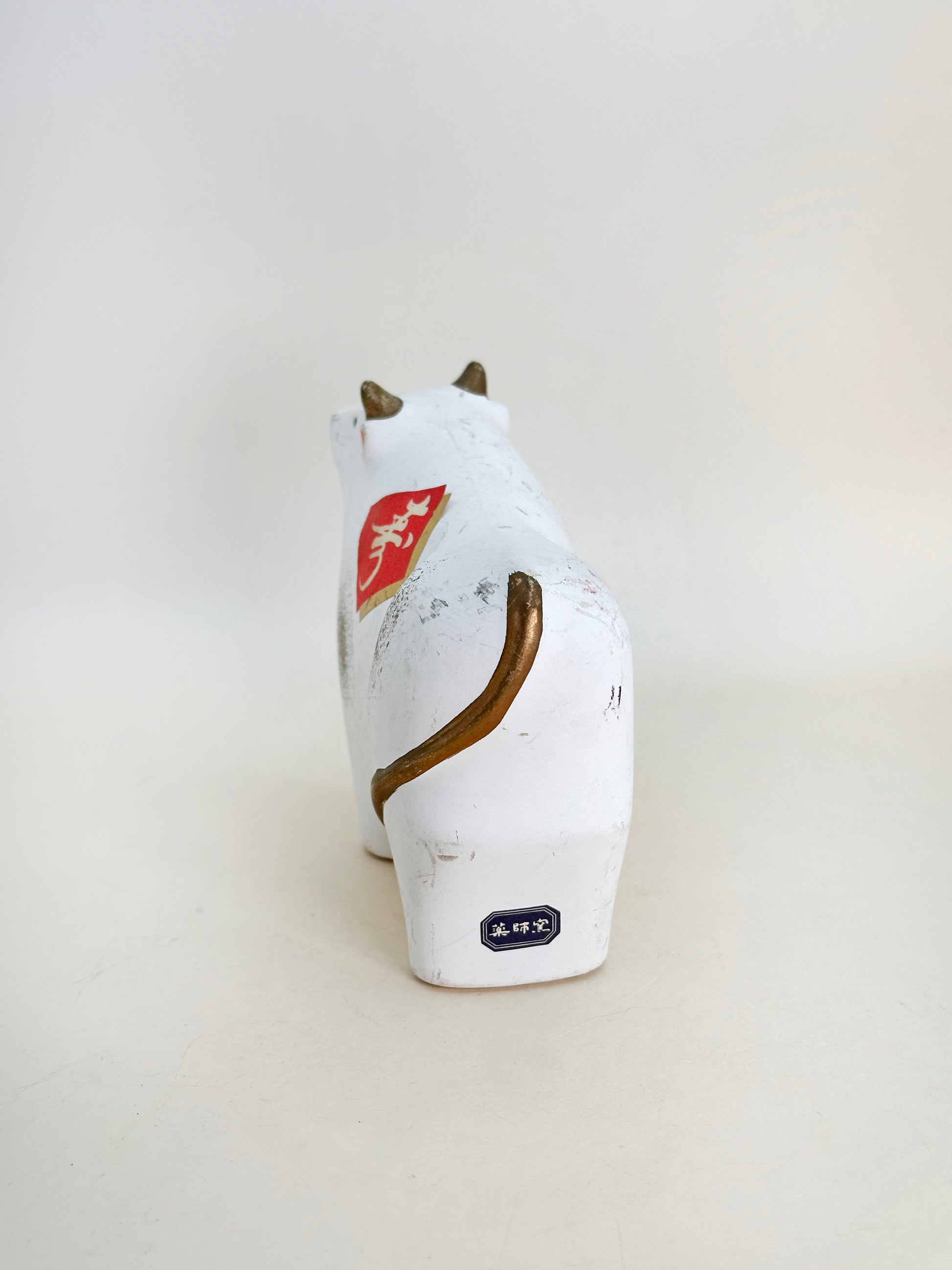 This ceramic ox figurine by Yakushigama (薬師窯), a traditional series of zodiac-themed ornaments meant to invite good fortune into the home. Yakushigama, a celebrated Japanese kiln with a heritage spanning over 1,000 years, is renowned for its exquisite craftsmanship in folk art and figurines that embody the spirit of seasonal celebration.