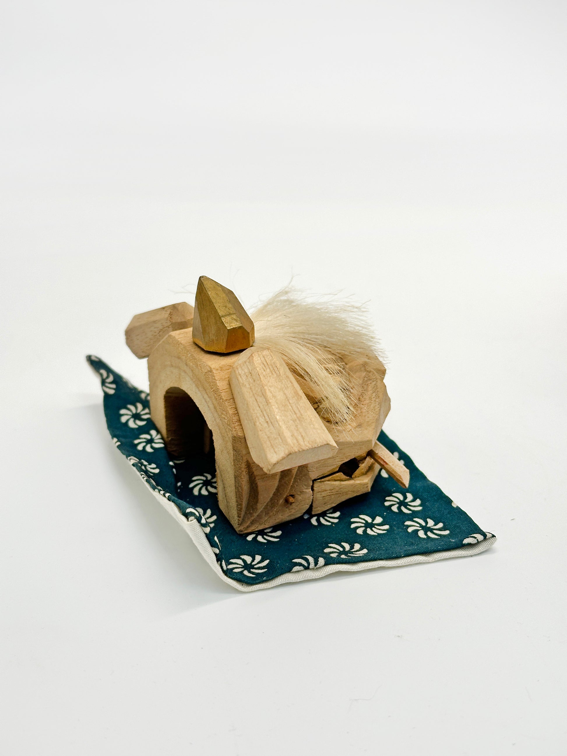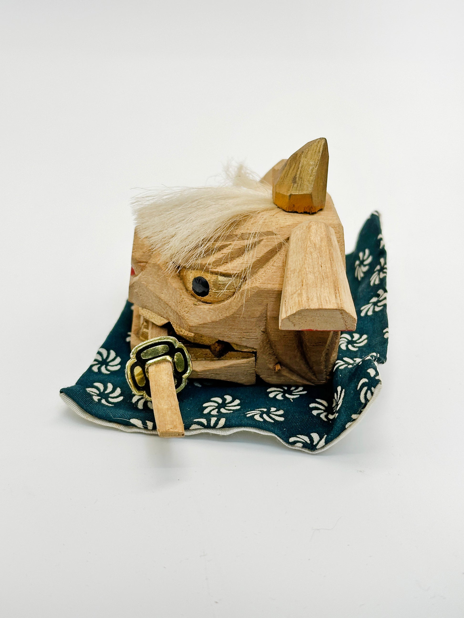 This captivating wooden lion head figure, known as Shishigashira (獅子頭), is a traditional folk craft from Kaga, the historical name for present-day Kanazawa in Ishikawa Prefecture. Carefully handcrafted by the renowned Kanazawa workshop Nakashima Menya (中島めんや), this piece reflects centuries of regional artistry and cultural tradition.