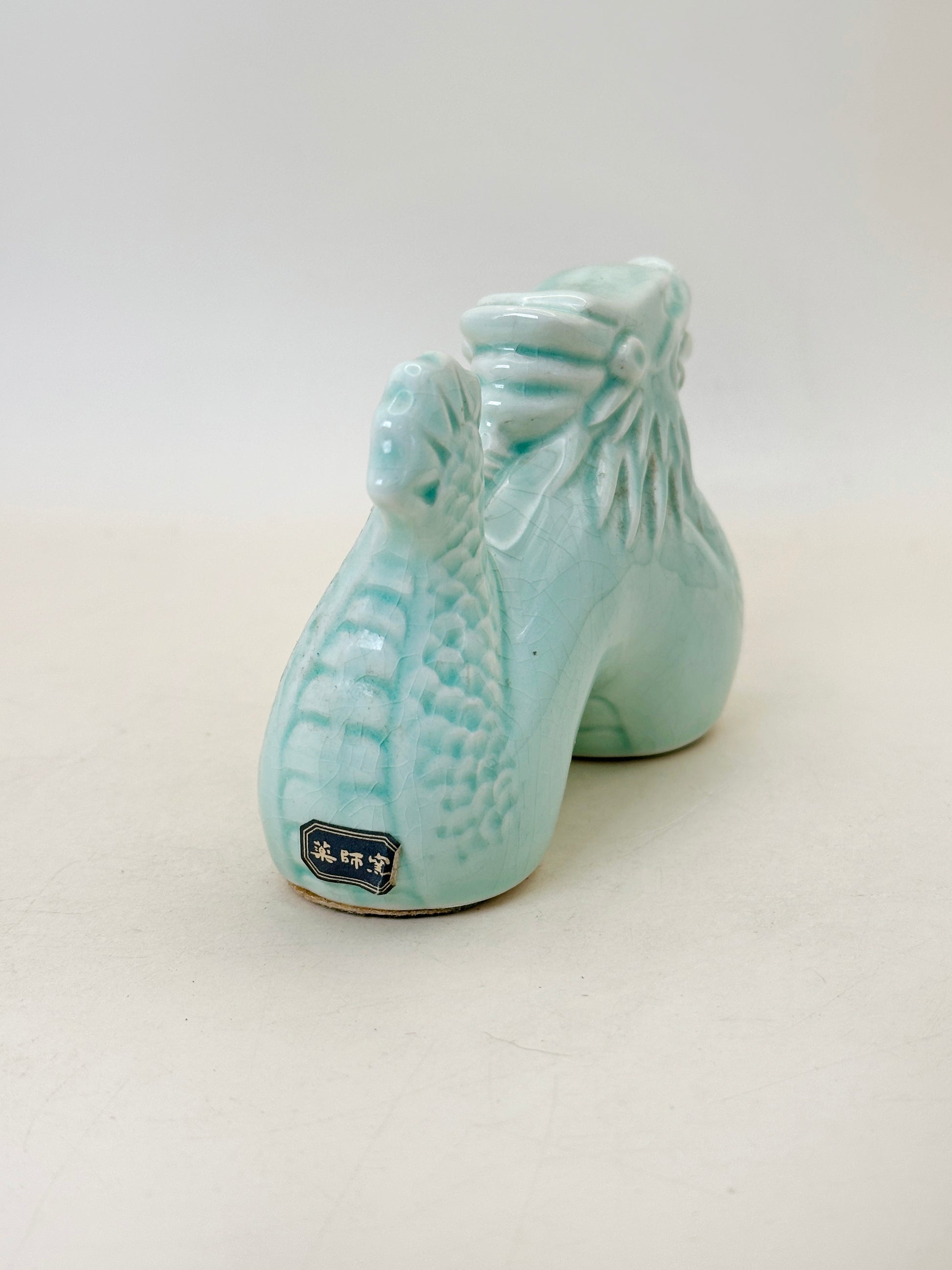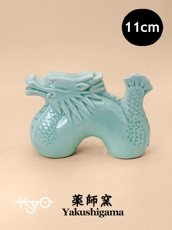 As a Shōfuku Eto, this piece is created to invite good fortune, protection, and prosperity, especially in the Year of the Dragon. In the zodiac cycle, the dragon symbolizes authority, success, and powerful forward momentum. Yakushigama, a celebrated Japanese kiln with a heritage spanning over a thousand years, is renowned for its exquisite craftsmanship in folk art and seasonal figurines. This celadon dragon reflects that enduring legacy—uniting traditional symbolism with refined ceramic artistry in a compact yet auspicious form.