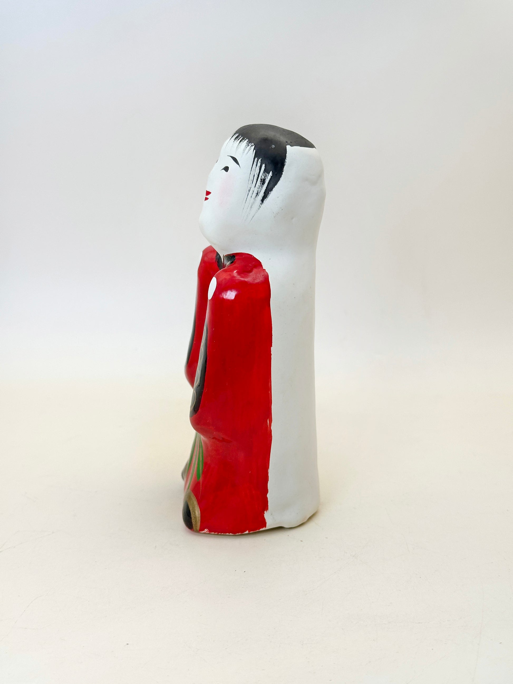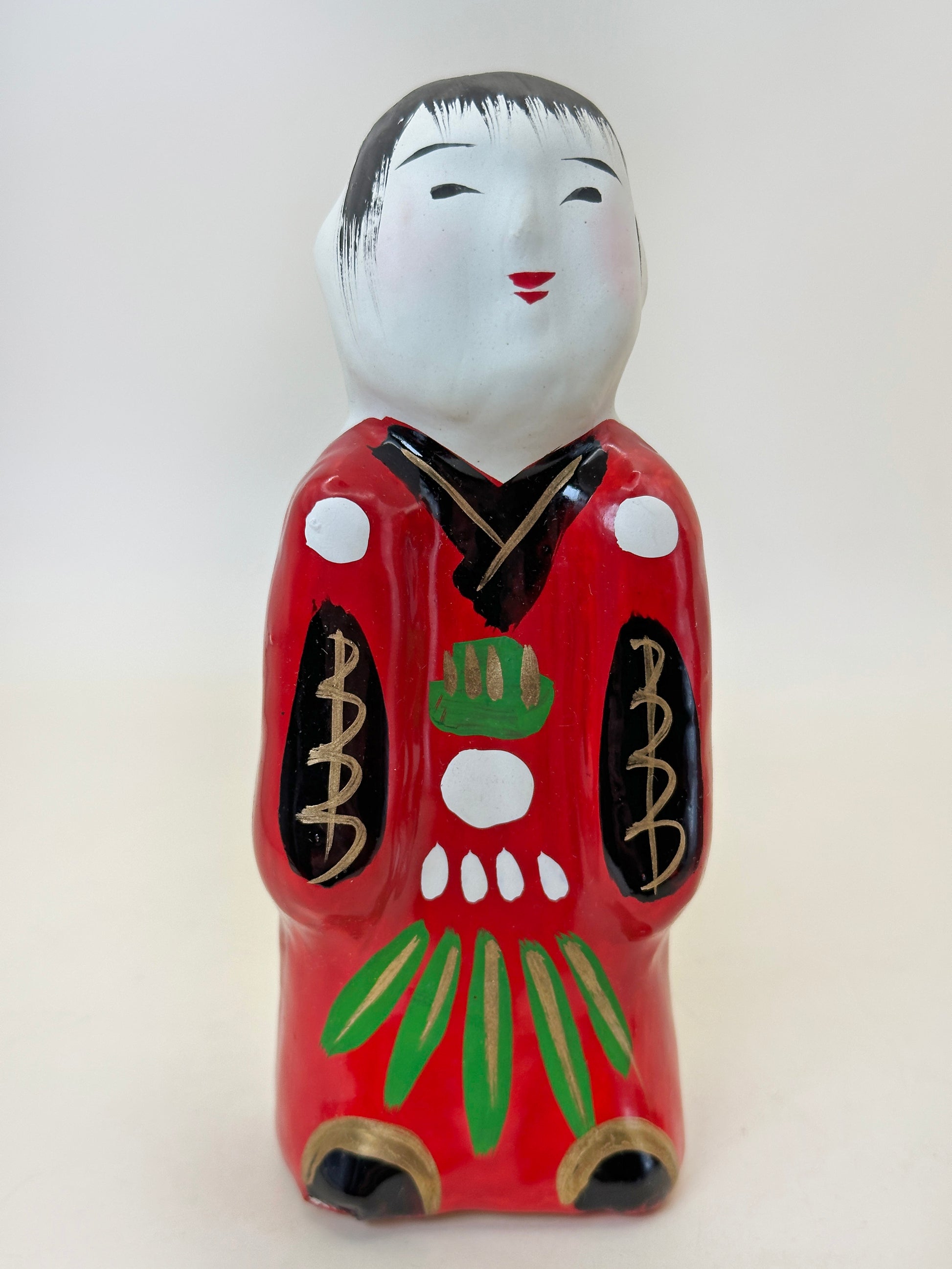 As a folk doll from Takamatsu in Kagawa Prefecture, it gradually came to represent wishes for children—especially girls—to grow up kind, well-mannered, and resilient. The serene face and simple upright form convey modesty and inner composure rather than outward grandeur. Like many papier-mâché folk toys, it functions not only as a decorative object but also as a symbolic charm, expressing hopes for good character, steady growth, and a gentle heart.