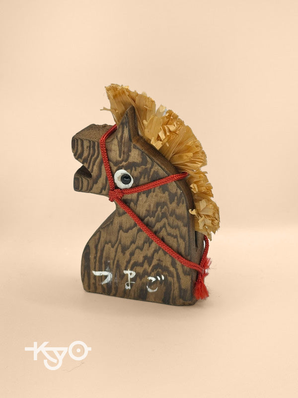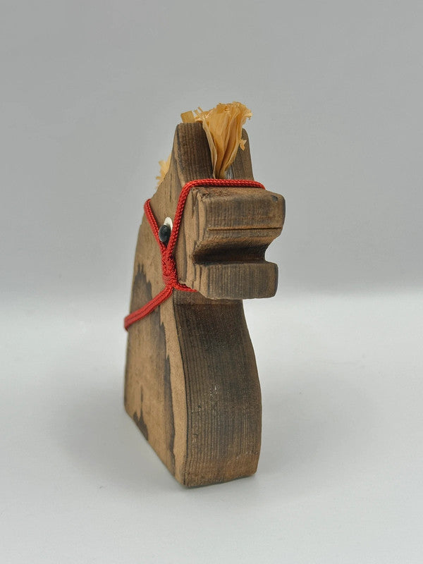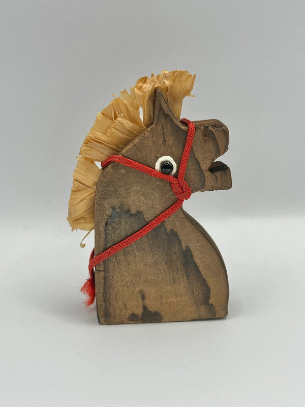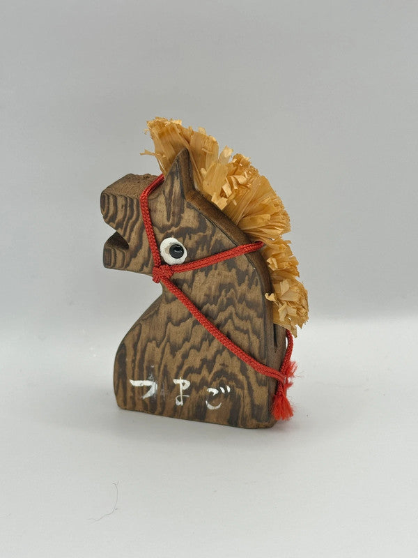 Small chagu-chagu Umako horse doll, mingei folk craft from Iwate prefecture ; paint and other decorations on wood.