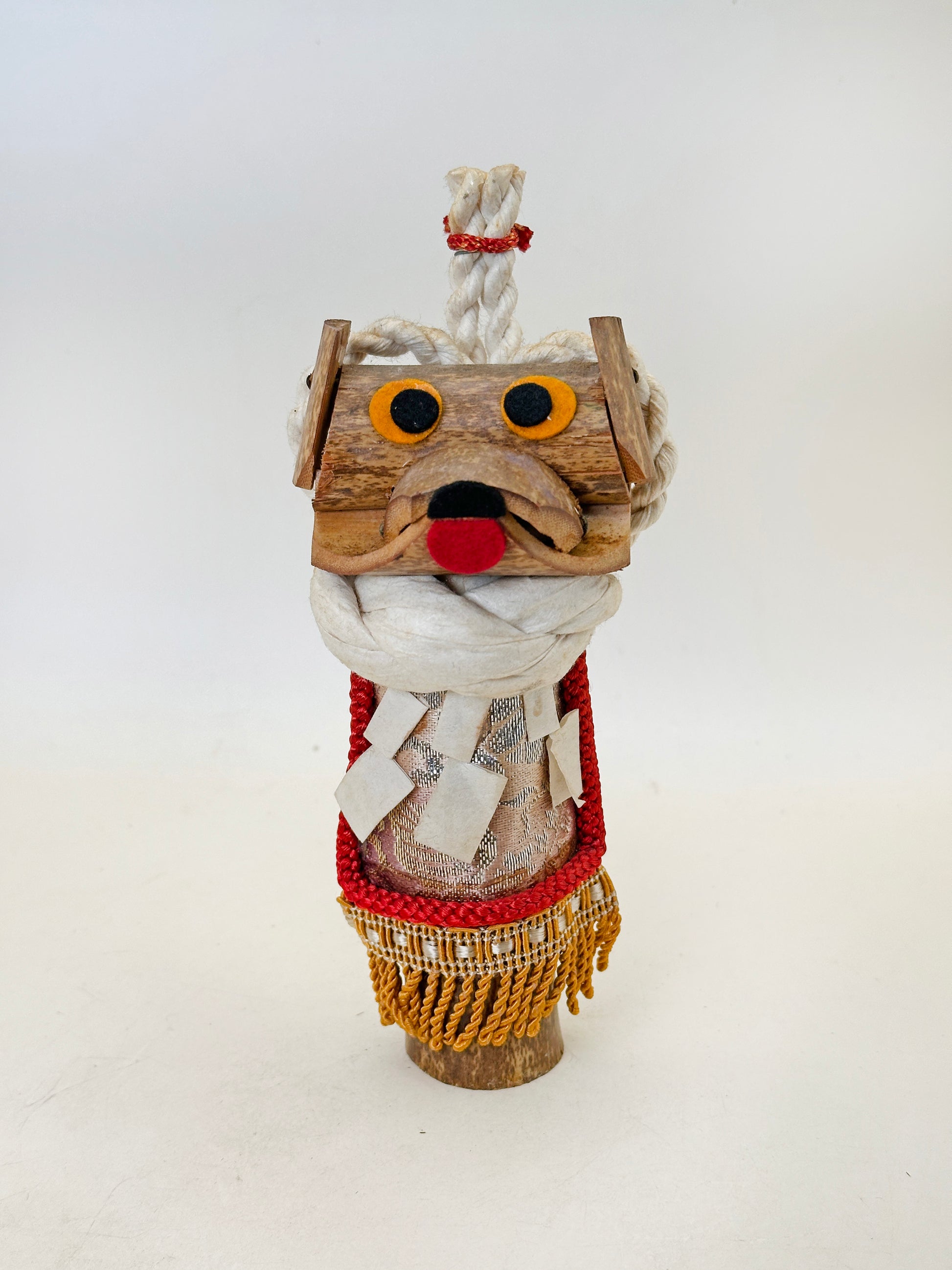 As a folk craft, this bamboo doll symbolizes bravery, determination, and competitive spirit—qualities long associated with fighting dogs in Japanese tradition. At the same time, its playful construction and handmade charm reflect the warmth and creativity of regional craft culture. Both rustic and expressive, this piece beautifully merges natural material with spirited character.
