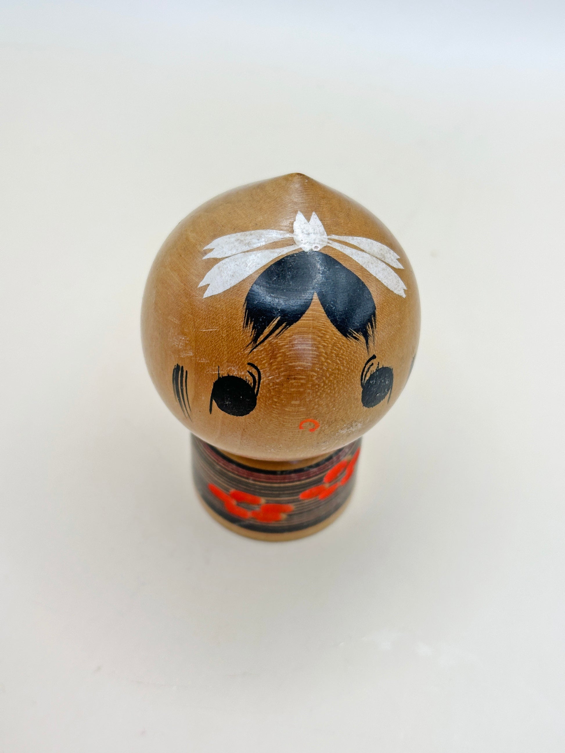 Despite its small size, the doll radiates personality. The smooth natural finish allows the grain of the wood to show through, adding warmth and organic character. Tamura’s sense of proportion — a slightly oversized head resting on a compact, cylindrical base — enhances the doll’s gentle charm and contemporary sensibility.