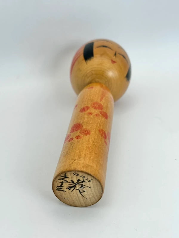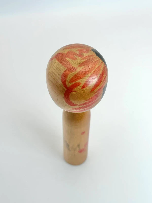 A vintage Togatta kokeshi by Mamoru Sato (佐藤護, 1903–1979) is a classic representation of the traditional aesthetic of the Togatta lineage. Its slender, cylindrical form is paired with a slightly oversized round head, giving it a poised yet playful appearance.