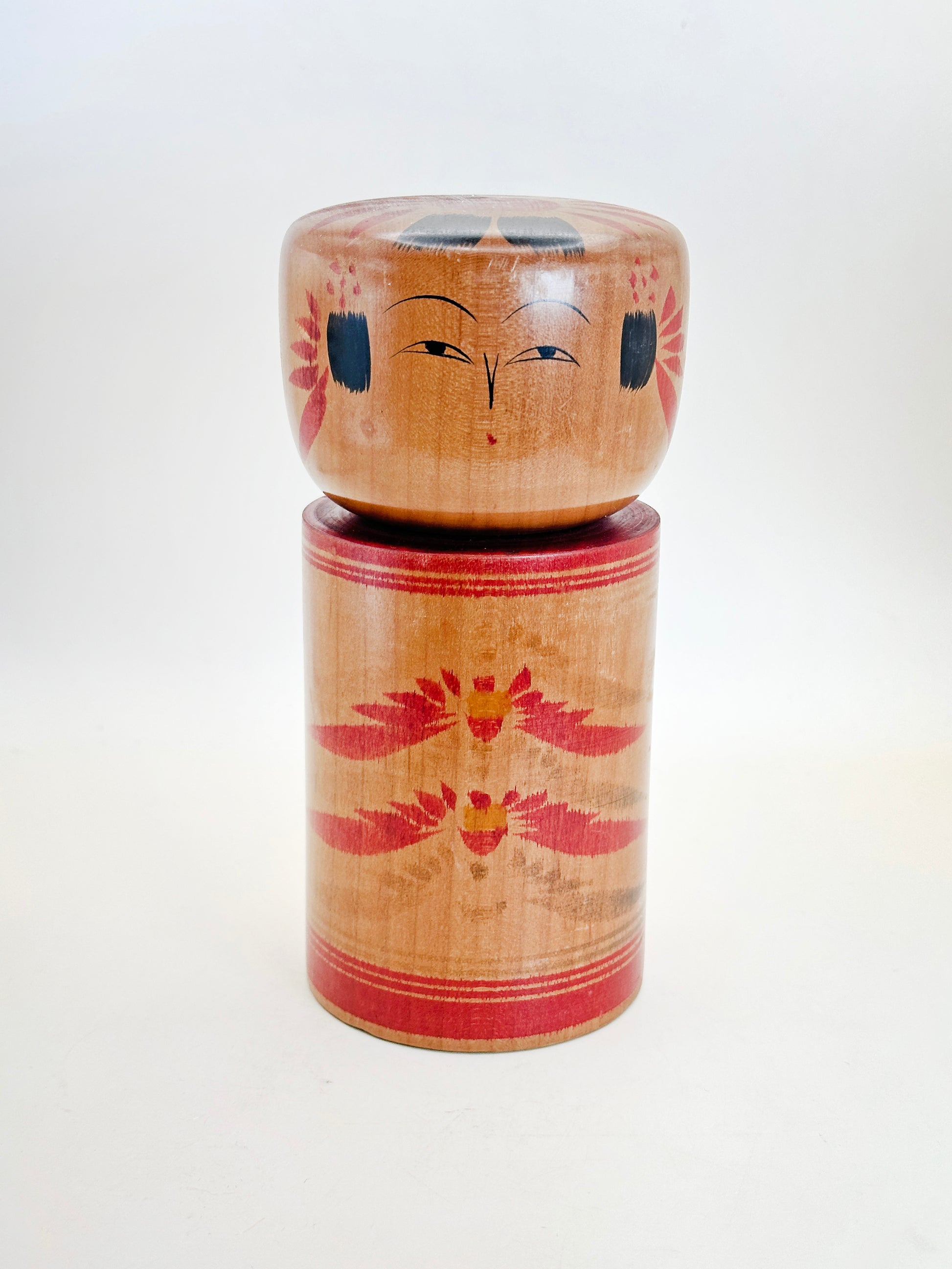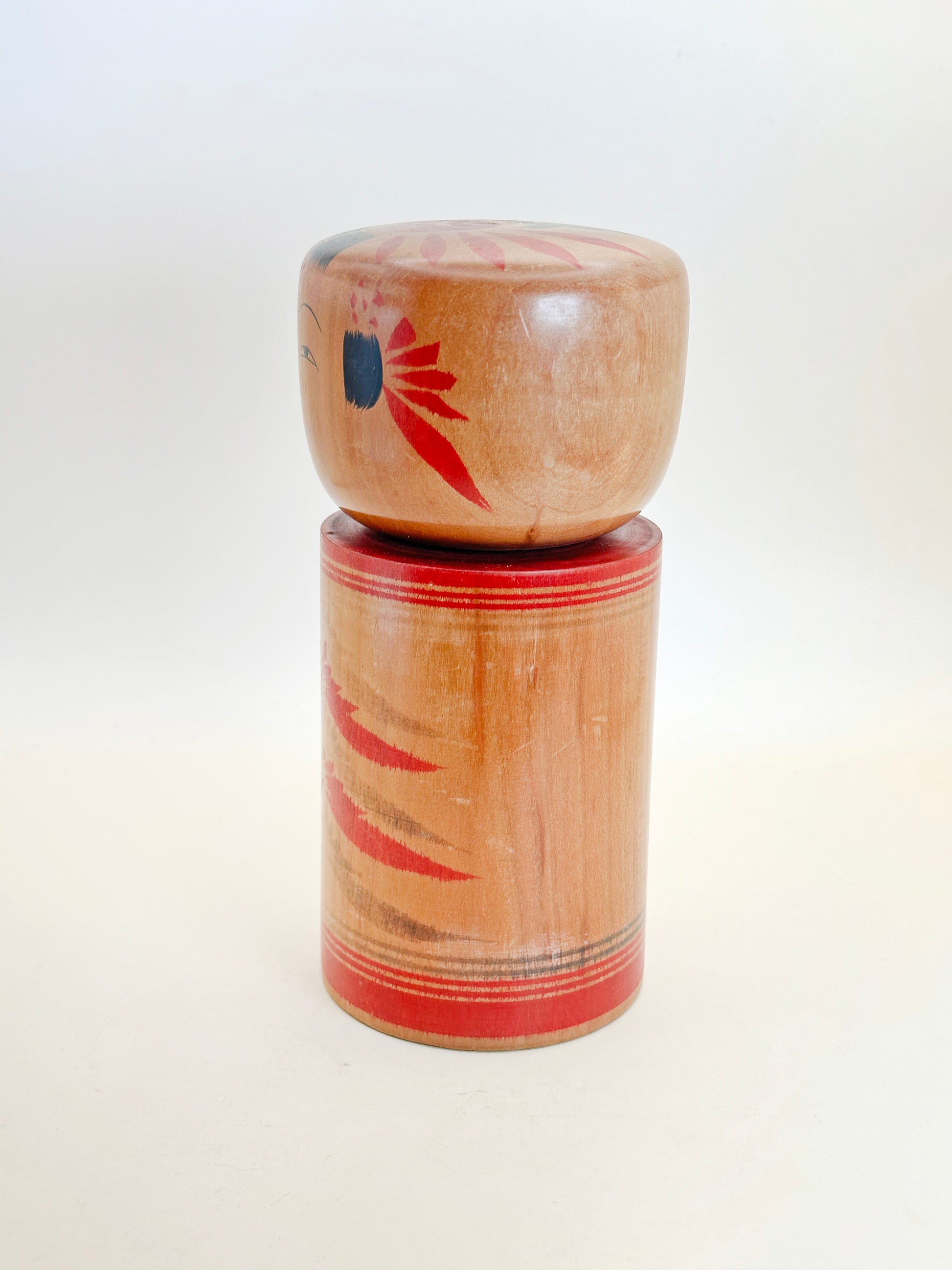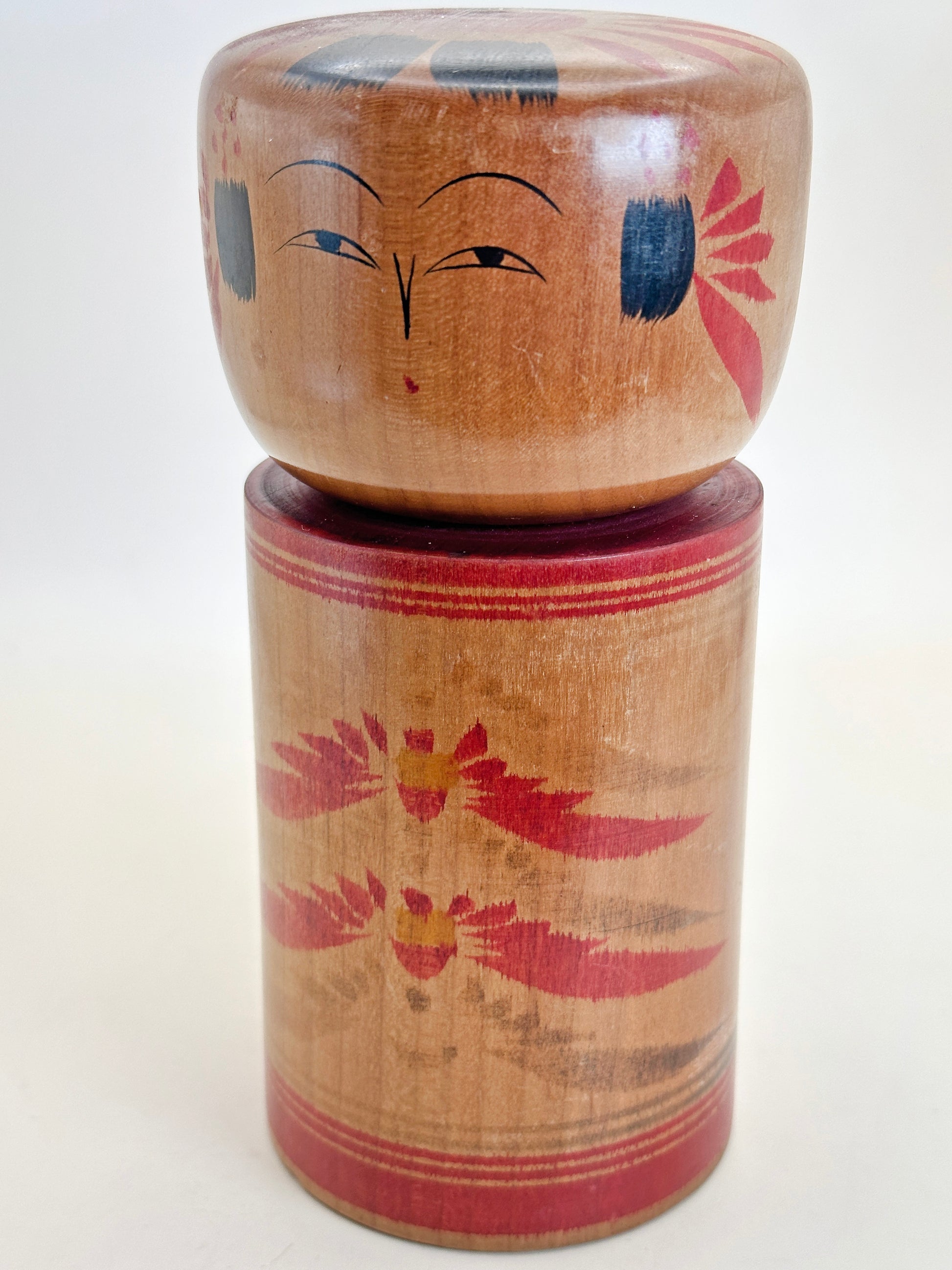 This is a traditional Zao-style kokeshi crafted by Ishiyama Kazuo (石山和夫, 1929–2017), a renowned artisan whose work helped bridge the classical roots of kokeshi with the expressive spirit of the postwar creative movement. Measuring 16cm in height, this charming piece embodies the distinct features of the Zao lineage, known for its compact, cylindrical body and large, flat-topped head.
