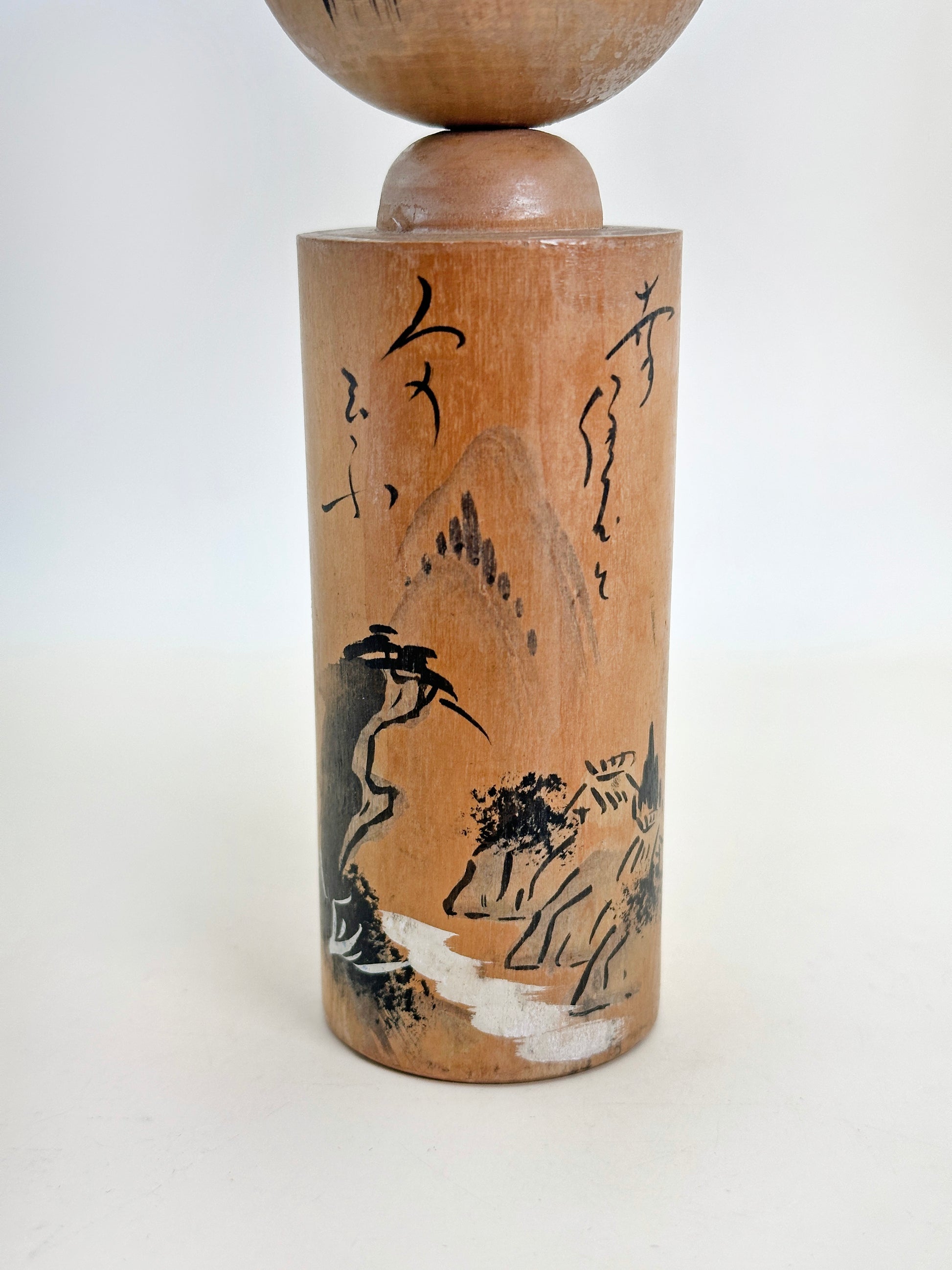 This omiyage kokeshi from Shirakawa-go (白川郷) beautifully reflects the quiet mountain atmosphere and traditional scenery of this historic village, famed for its UNESCO-listed gasshō-zukuri farmhouses.