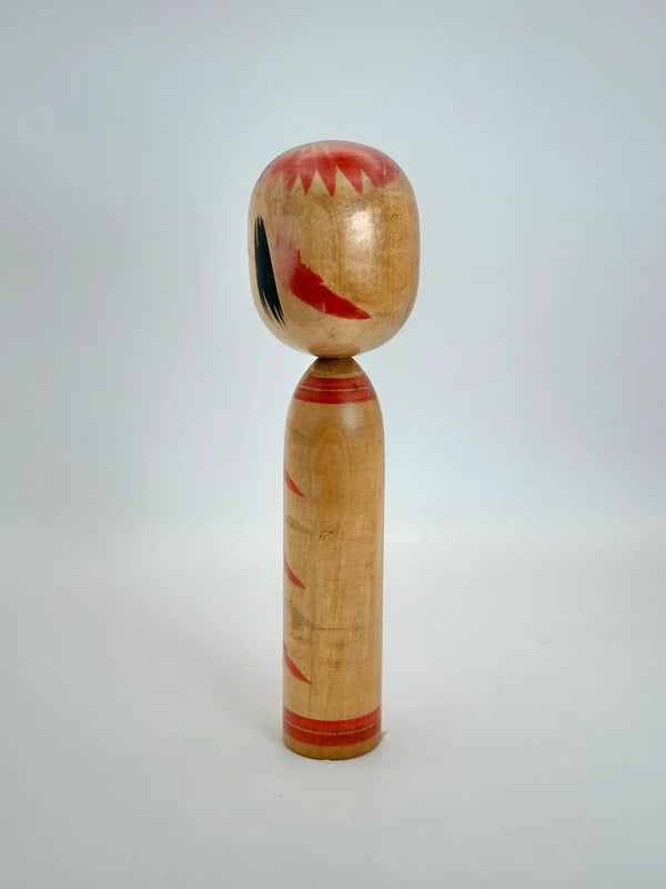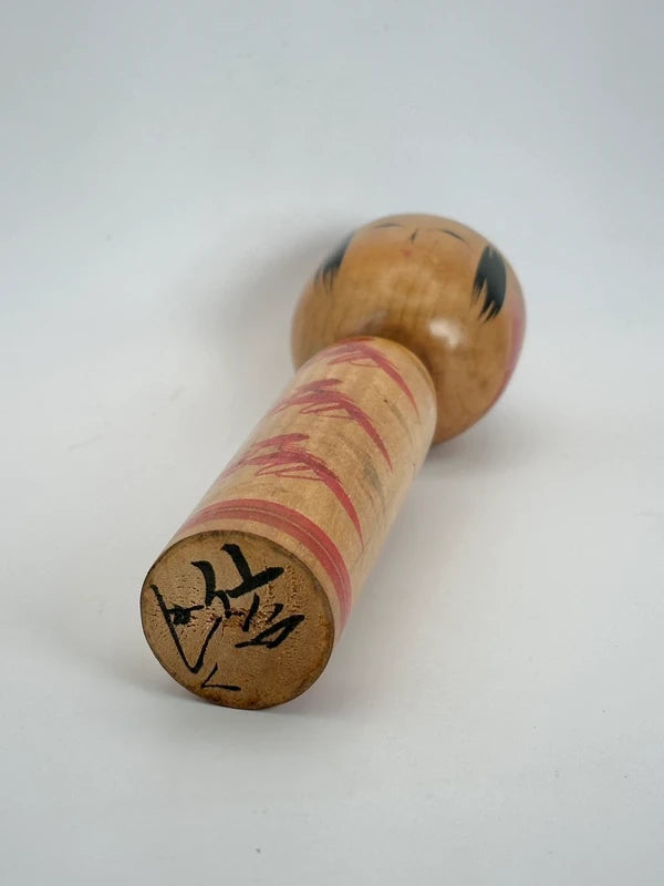 This elegant Togatta-style kokeshi was created by Kashiku Konno, a rare and respected female kokeshi artisan from Zao Town, Miyagi Prefecture—one of the historical centers of traditional kokeshi-making. Her work is distinguished by its delicate proportions, expressive faces, and carefully painted motifs, staying true to the Togatta lineage while carrying a distinctly gentle, feminine sensibility.