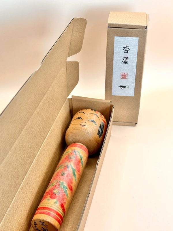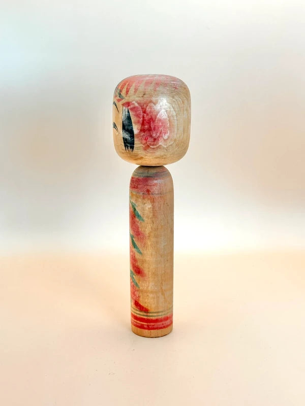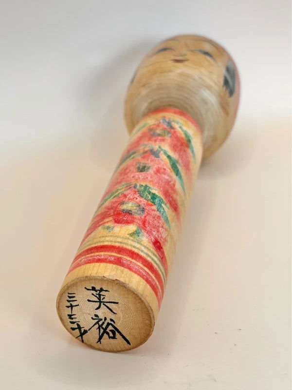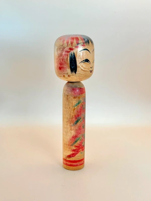 With its slender proportions and flowing decoration, this piece embodies the quiet, rustic elegance typical of Hijiori kokeshi, a lesser-known but deeply charming branch of the Yamagata family of kokeshi traditions.