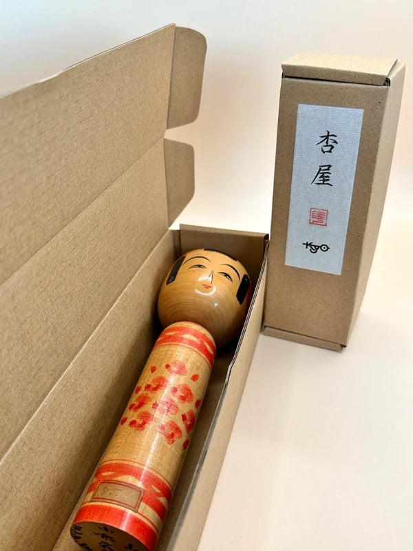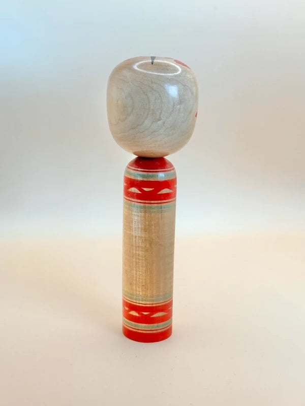 Eizo worked for many years at Seizo’s factory before establishing his own workshop in 1942. Post-war, he continued to use a traditional foot-operated wheel and later collaborated with his son Kotaro, painting and coloring his woodwork from 1955 onward. In 1963, he moved to Suzukikawa with Kotaro and began specializing in restoring old-style kokeshi. His work is known for its composure, fine detailing, and faithful adherence to Yamagata traditions, making him a beloved figure in the kokeshi world.