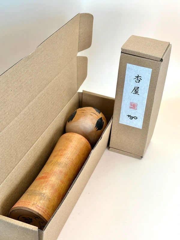 Matsuko Takahashi (1920–2005) was born in Naruko, Miyagi Prefecture, into a family deeply rooted in the kokeshi tradition. After working during the war years and raising her children, she returned to Naruko in 1950 and began crafting kokeshi around 1952. Initially focused on souvenir dolls, her interest shifted to traditional forms. By 1956, she was painting and decorating traditional Naruko kokeshi on lathed wood provided by local artisans. She was part of a multi-generational kokeshi lineage, her daughter Masako married fellow kokeshi artist Takahashi Teruyuki, and her son Yoshikazu also became a maker—making her an influential and respected figure in the Naruko kokeshi community.