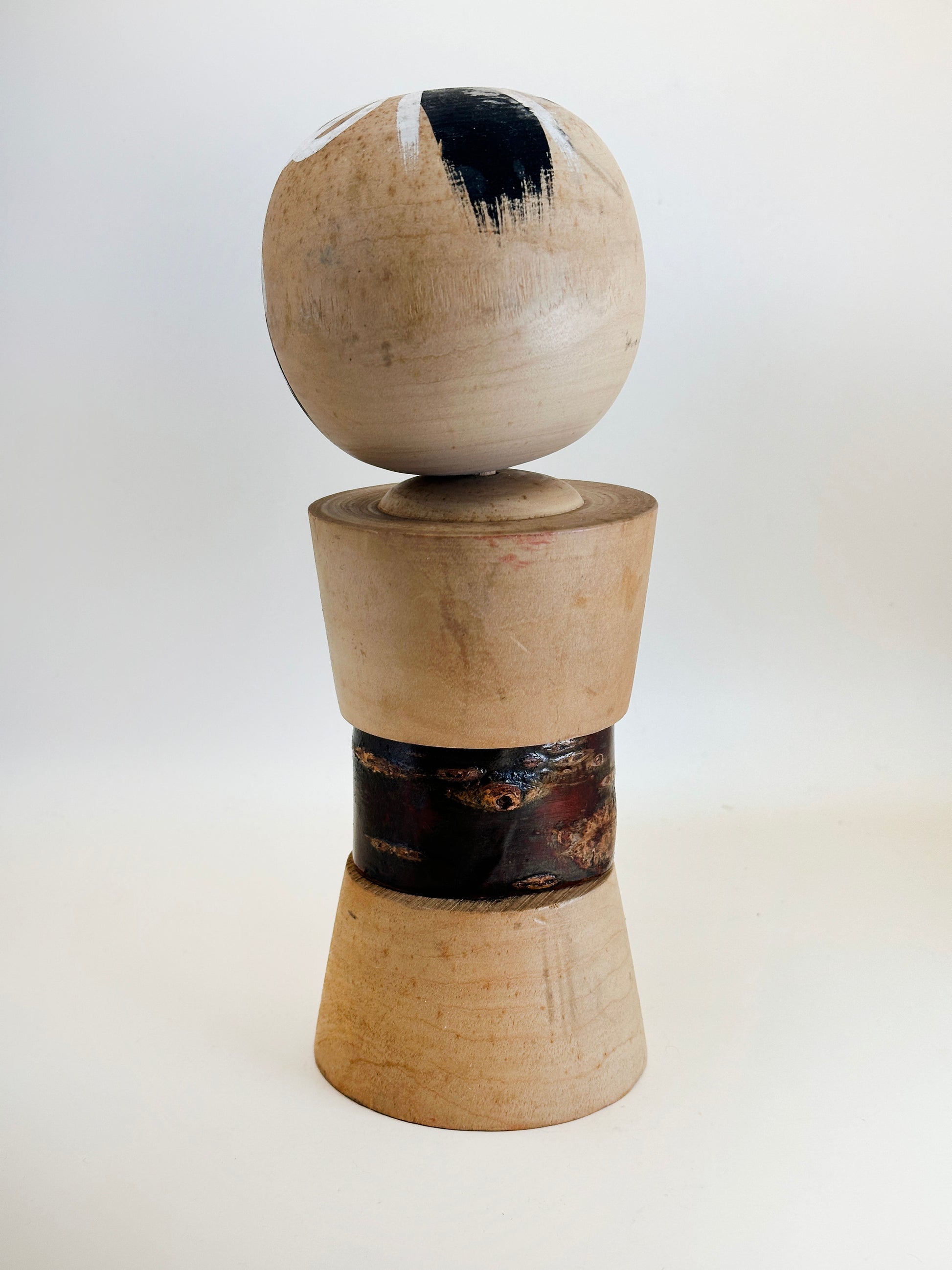 One of the most distinctive features of this piece is its midsection, which is made of polished bark from the mountain cherry tree (yamazakura, 山桜). The glossy, dark texture adds a natural contrast to the smooth wood above and below, showcasing the artisan’s appreciation for the raw beauty of the material.