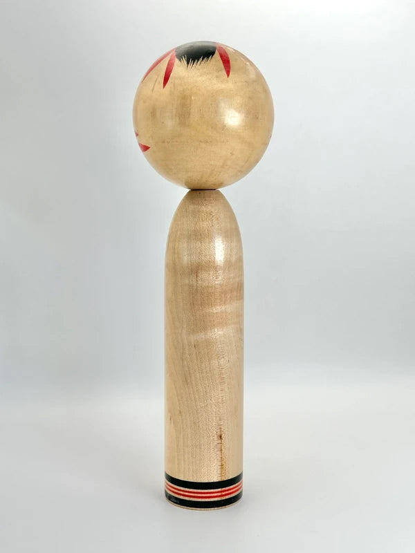 Perfect condition of a tradiotional yajiro kokeshi made by Chiyoko Hamatsu 浜津千代子 also known as Nidaime Tetsuen 二代目哲園 (1932–2007). She was the daughter of esteemed kokeshi artist Tetsuen Hamatsu (浜津哲園), and she succeeded him under the artist name Nidaime Tetsuen, meaning "Second Generation Tetsuen." Born in 1932, she dedicated her life to the craft of traditional kokeshi, carrying on the family legacy.