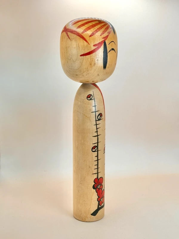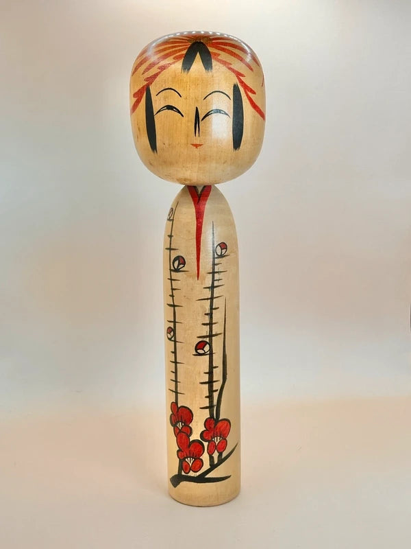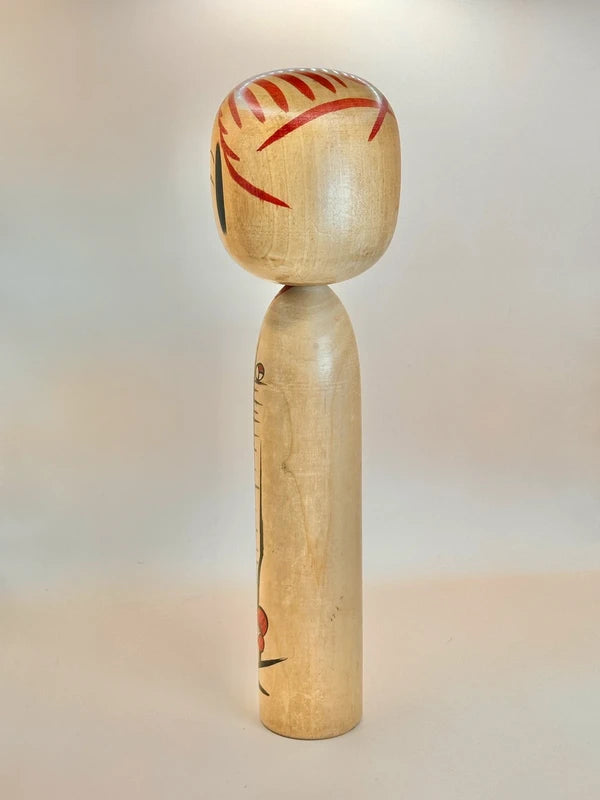 Encouraged by Tatsumi and Dobashi Keizo, he engaged in revival-style creations and introduced a three-tiered chrysanthemum motif on his smaller dolls. Despite a decline in brush control during his later years, Satō Yoshiaki remained dedicated to his craft, continuing to produce kokeshi until his death at the age of 86.