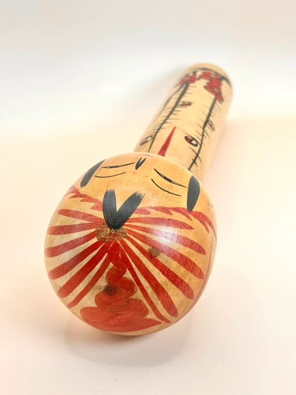 A traditional Togatta kokeshi, crafted by Satō Yoshiaki, showcases the timeless beauty and elegance characteristic of the Togatta lineage. A successor to a long heritage of kokeshi makers in Miyagi Prefecture, Satō Yoshiaki is known for his refined brushwork and precise carving style that honors tradition while retaining a personal, expressive touch.
