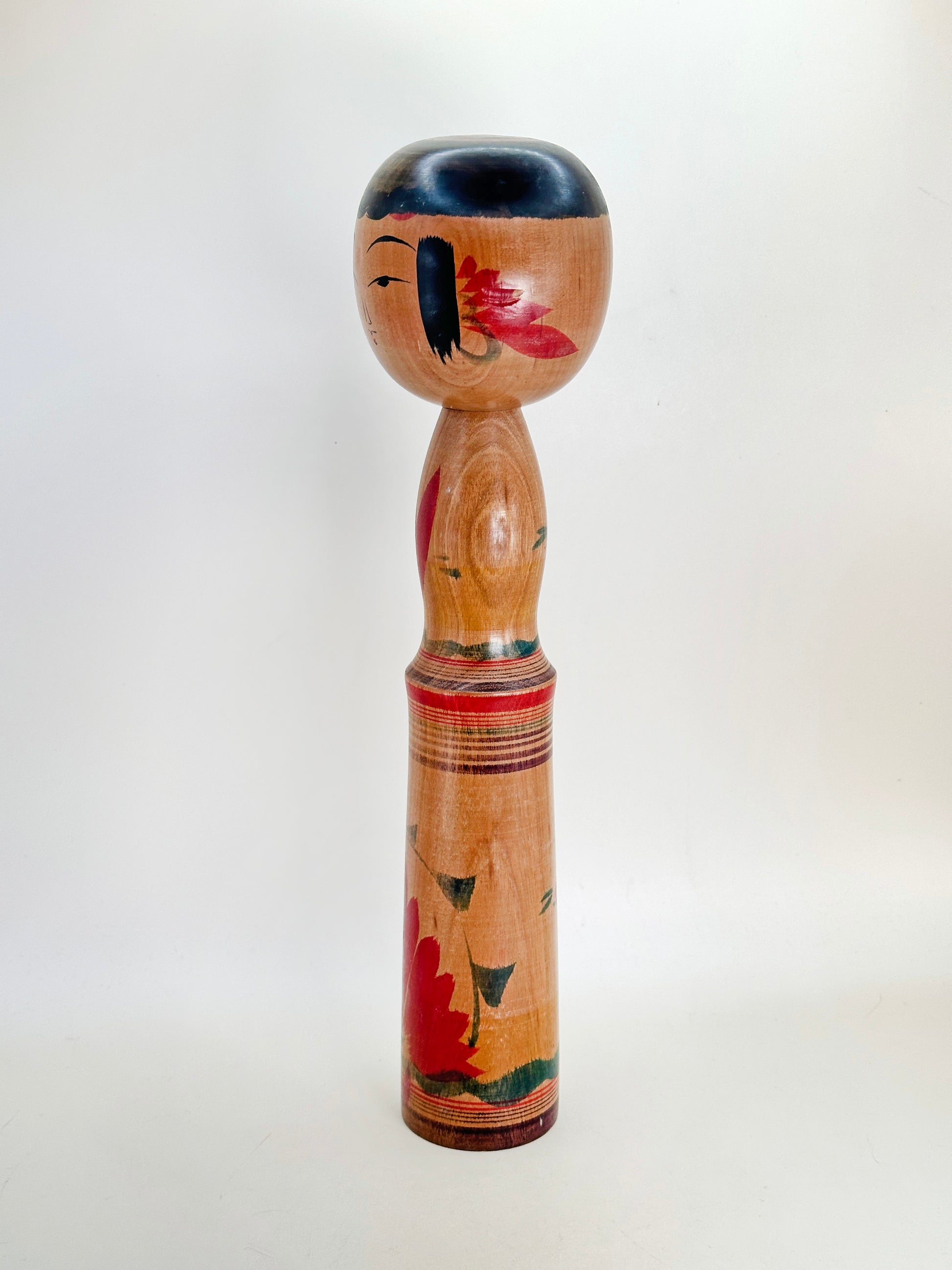 This elegant Yajirō-style kokeshi is the work of Yukiko Inoue (井上ゆき子, 1932–2010), a notable female artisan who brought a deep artistic sensibility and passion for tradition into the world of kokeshi.