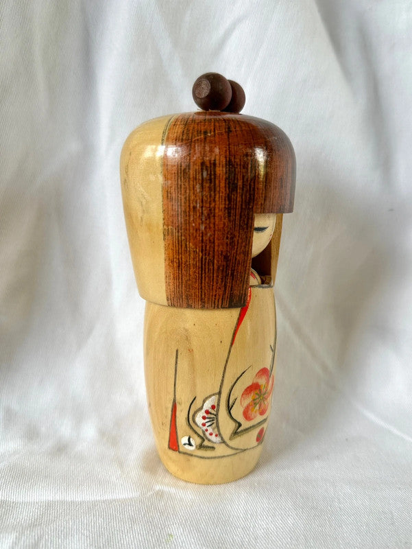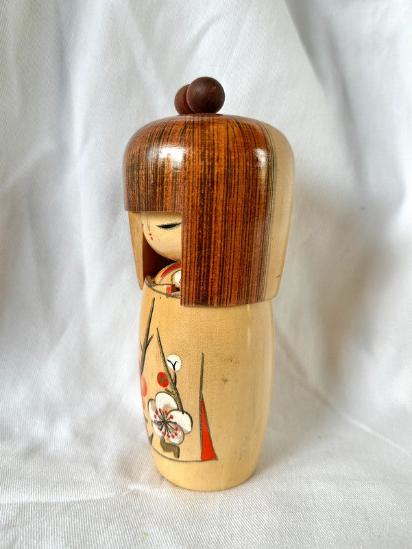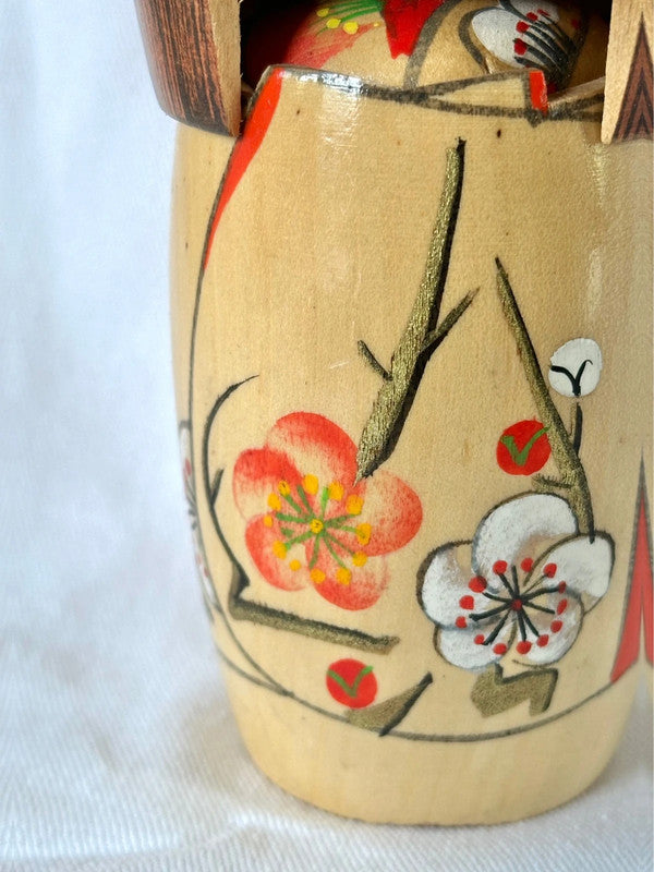 Kokeshi Doll by Kojo Tanaka "A Dream of Spring" This is a work of Kojo Tanaka who won a kokeshi competition several times. You can see its beautiful and meticulous painting on the body. Plum blossom express the feeling of spring.