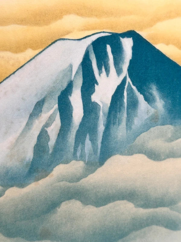 The painterly style and atmospheric color blending reflect the traditions of Nihonga (Japanese-style painting), with a delicate balance of form and emptiness that evokes the Zen aesthetic. The composition invites quiet contemplation, capturing Mount Fuji not just as a geographical landmark, but as a timeless symbol of purity, endurance, and transcendence.