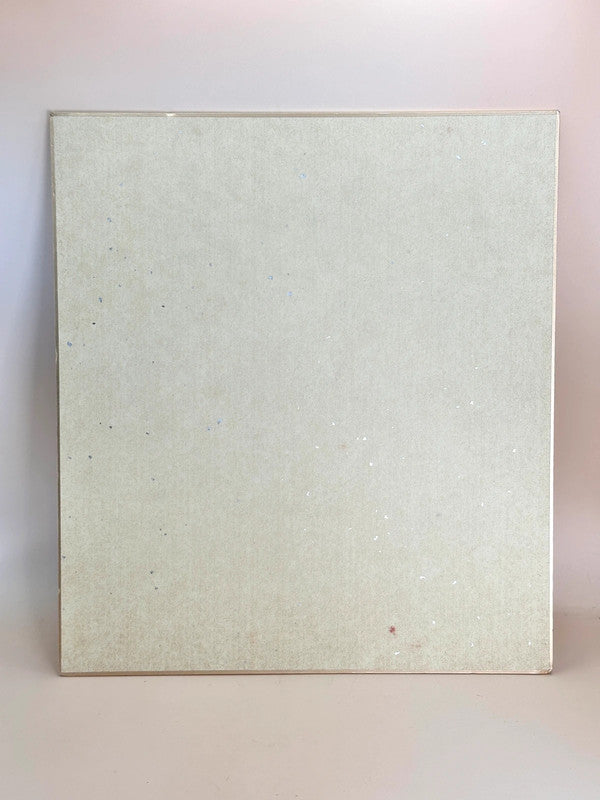 This vintage shikishi (色紙) artwork print depicts a traditional 馴牛圖 (じゅんぎゅうず / Jun-gyūzu), “Picture of a Tamed Ox.” It shows a cheerful child riding atop a large ox, holding a flute while the animal calmly walks forward. The painting is executed in delicate sumi-e (ink wash) style, with fluid brushstrokes that bring out the ox’s strength and the innocence of the child. This imagery is closely connected to Zen iconography, particularly the Ten Ox-Herding Pictures (十牛図), which symbolize stages of self-discipline and enlightenment.
