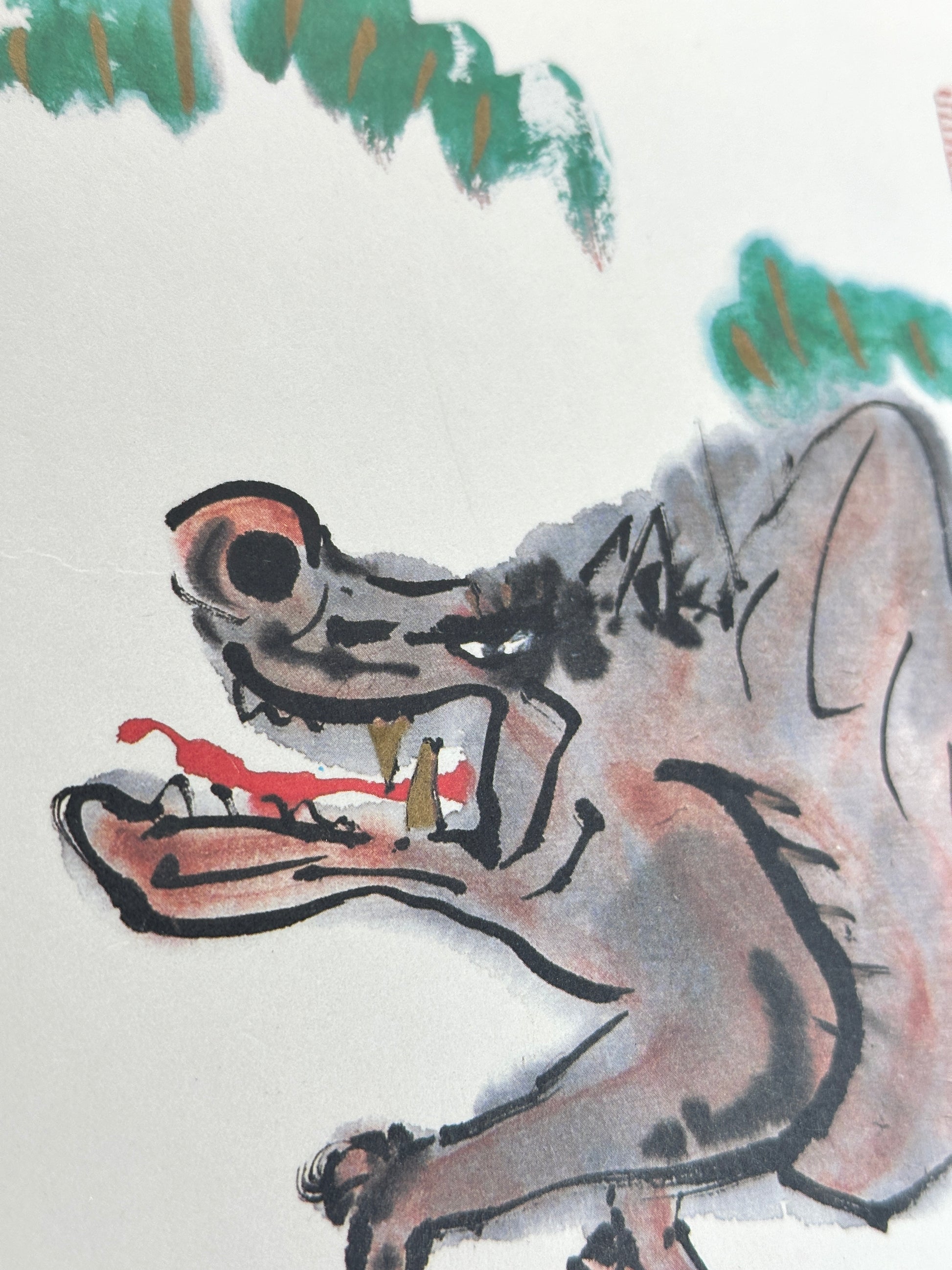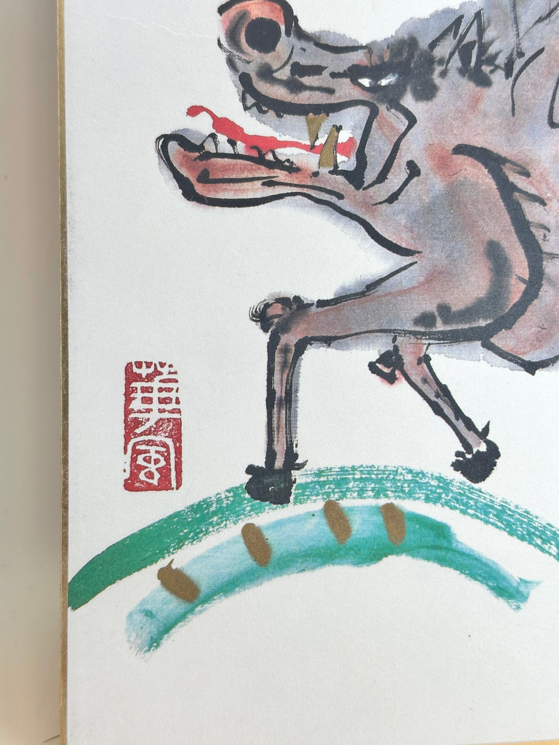This shikishi exemplifies that spirit. The boars, painted with a sense of playful strength and spontaneity, embody endurance and forward motion — qualities celebrated in Japanese culture as virtues of the inoshishi. The result is a piece that radiates life, simplicity, and the unselfconscious energy of Zen brushwork.