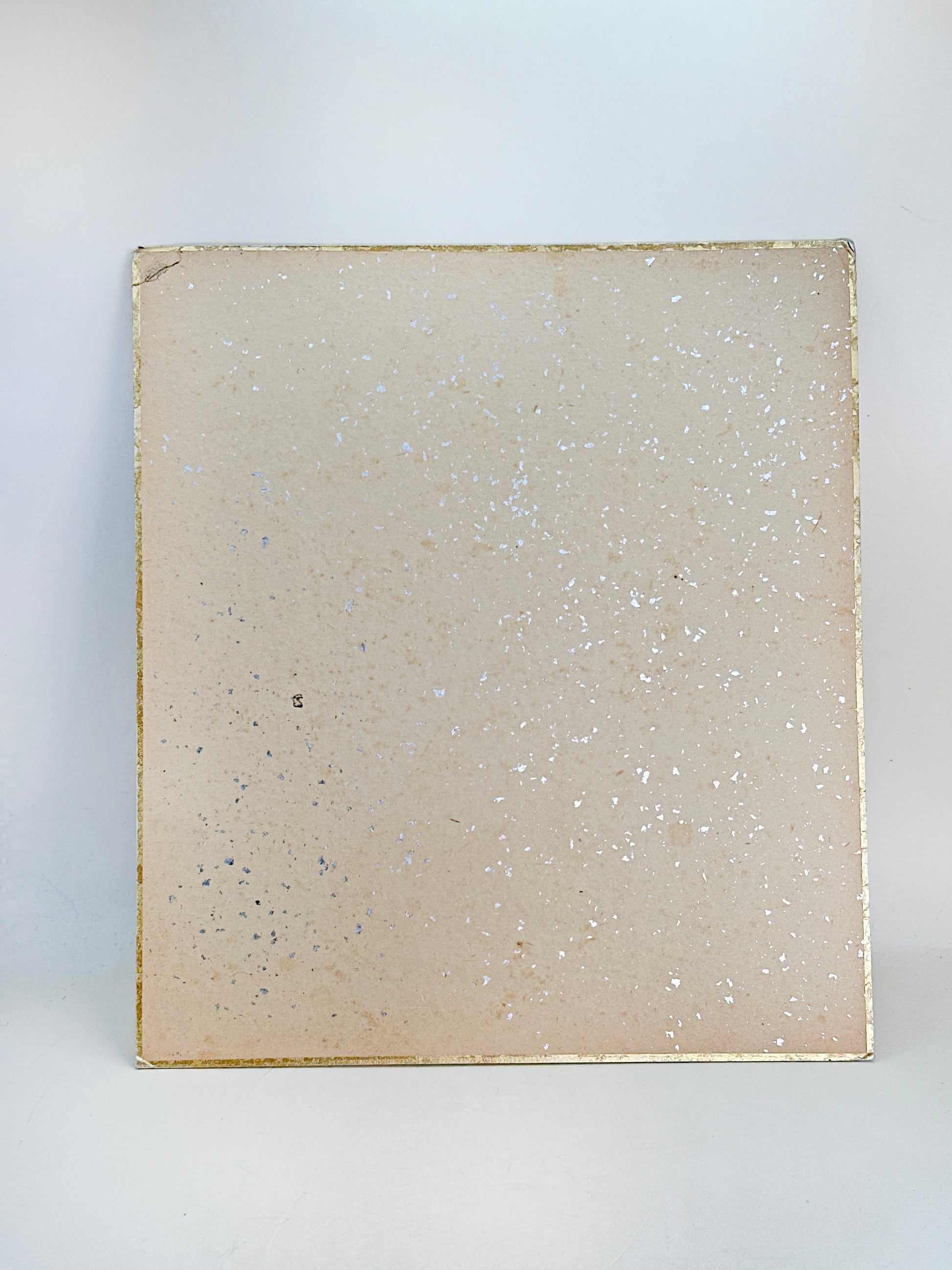 This shikishi artwork depicts “The Lucky Mallet Bringing Fortune” 来福小槌開運図. The composition centers on a richly painted uchide no kozuchi (打ち出の小槌), the legendary “wish-granting mallet” of Japanese folklore, rendered in deep lacquer-like browns with carefully layered brushstrokes that suggest carved wood grain and polished sheen.