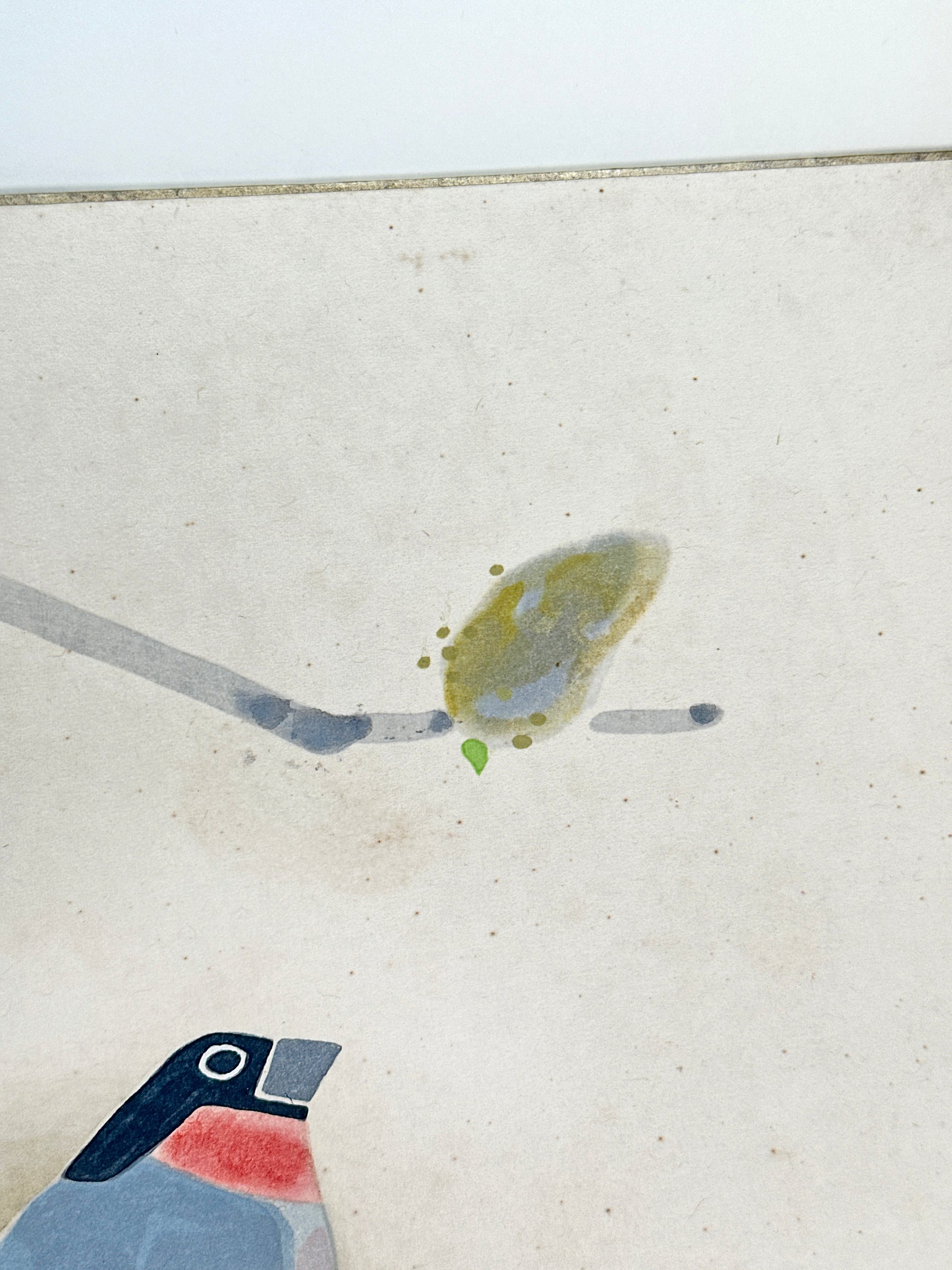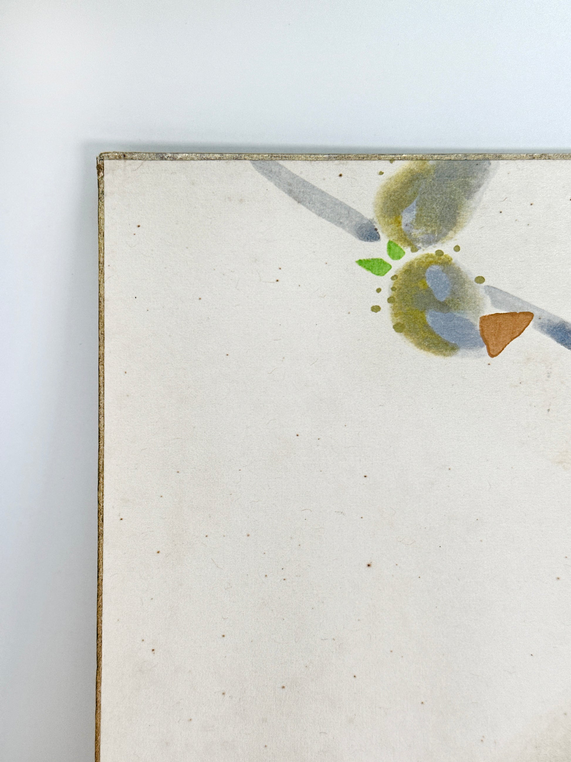 This refined shikishi artwork card by Mori Hakuhō 森白甫 is titled 「小禽図」 (Shōkin-zu), meaning “Small Birds”.